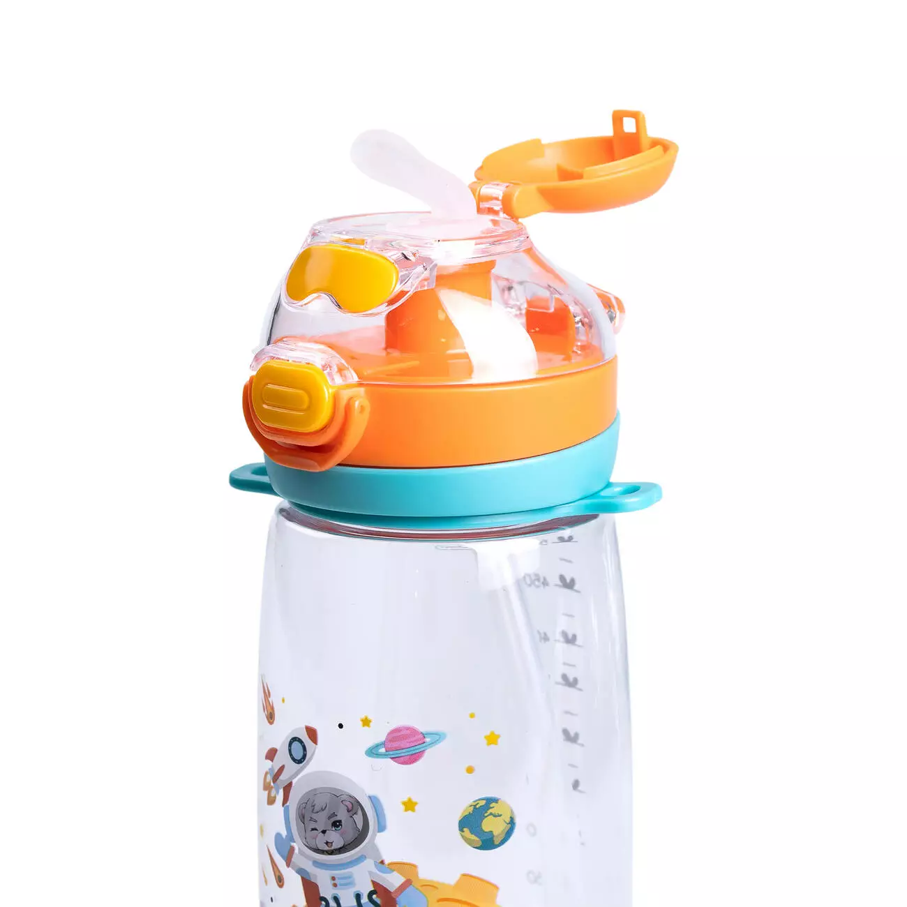 Дитяча пляшка для напоїв об'ємом 550 мл призначена для комфортного використання під час прогулянок, навчання або активного відпочинку. Вона оснащена трубочкою, що дозволяє зручно пити без нахилу пляшки. Завдяки ремінцю пляшку можна носити на плечі або прикріплювати до рюкзака, що забезпечує зручність у перенесенні.
