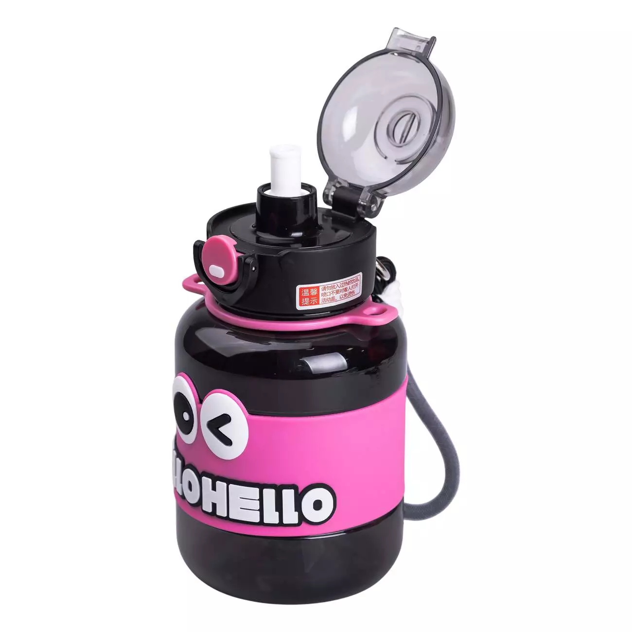 Дитяча пляшка для води HELLO-HELLO 680 мл з ремінцем, чорний