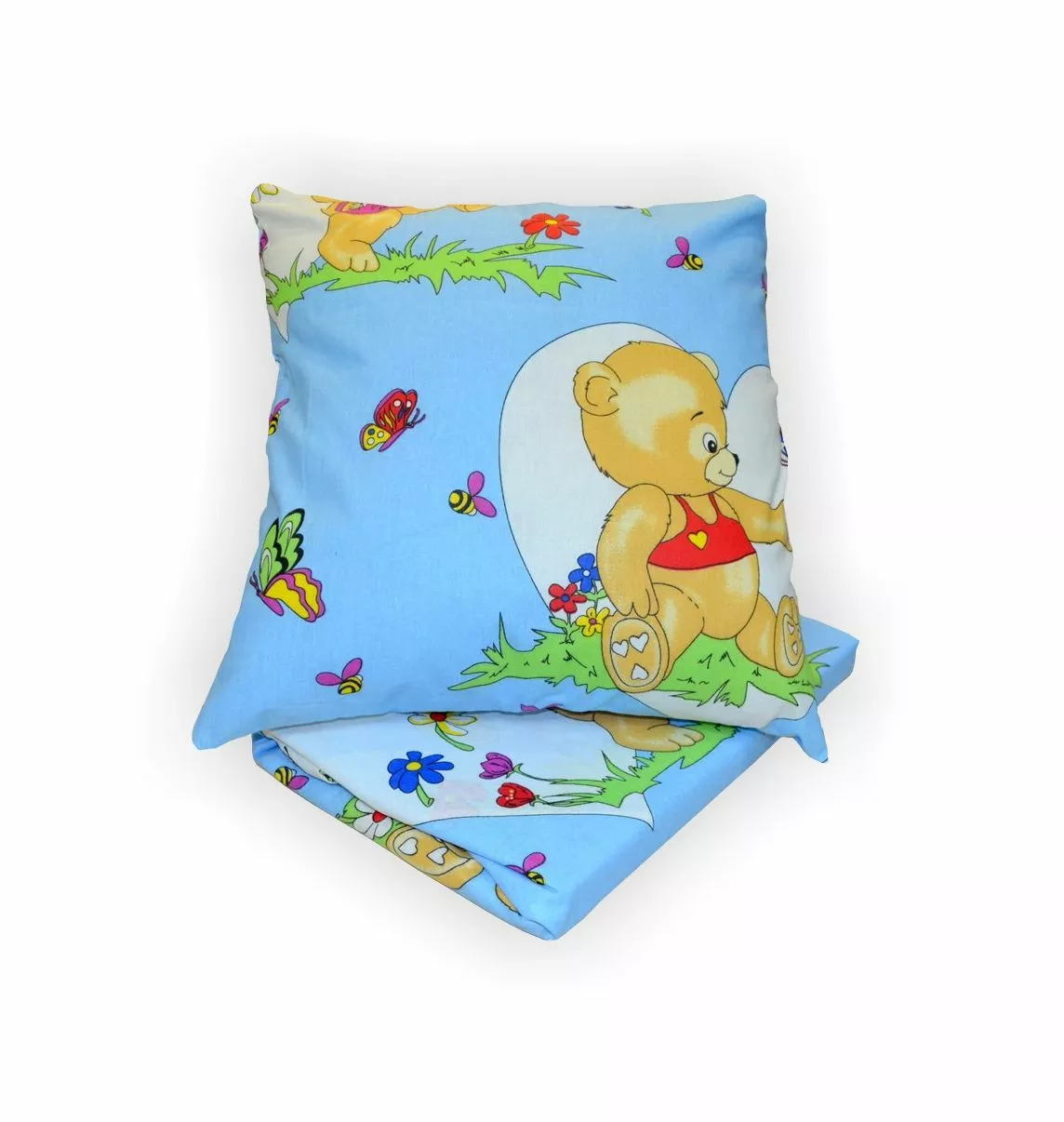 Комплект постільної білизни дитячий в пакеті ПВХ. Простирадло 100х150 см, підковдра 105х145см, наволочка 40х60см - 1шт. Торгова марка: Home Line. Матеріал - бязь 100% бавовна, щільність 120 г/м2.