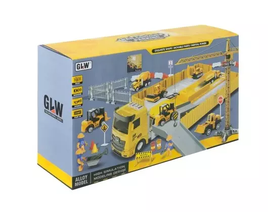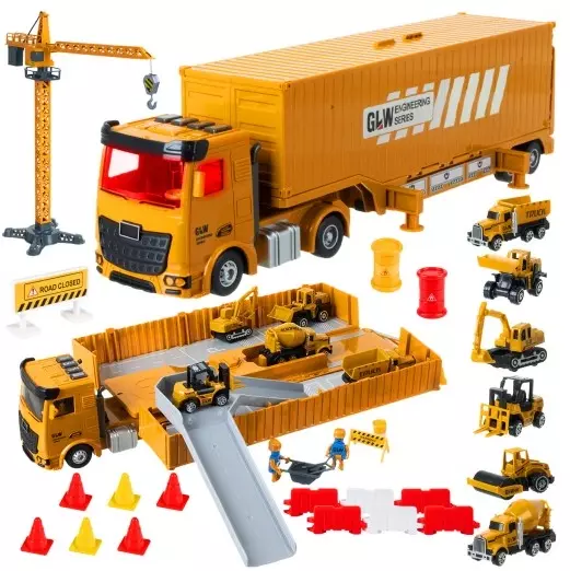 У комплекті — вантажівка, кран, бетономішалка, каток, навантажувач,