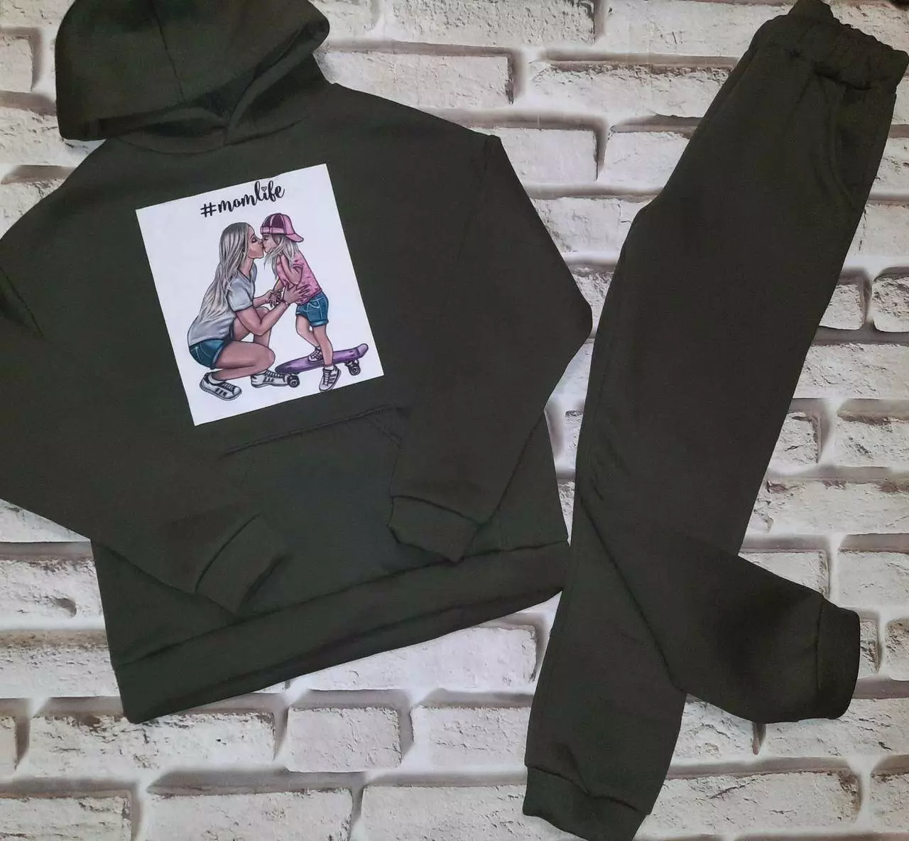 Дитячий спортивний костюм на дівчинку колір Хакі (Плотна, тепла тканина, не кашлатиться) "Мама та дочка"