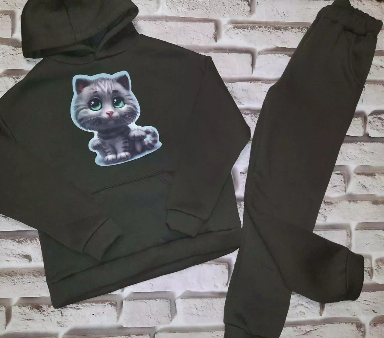 Дитячий спортивний костюм на дівчинку колір Хакі (Плотна, тепла тканина, не кошлатиться) "Кошеня"