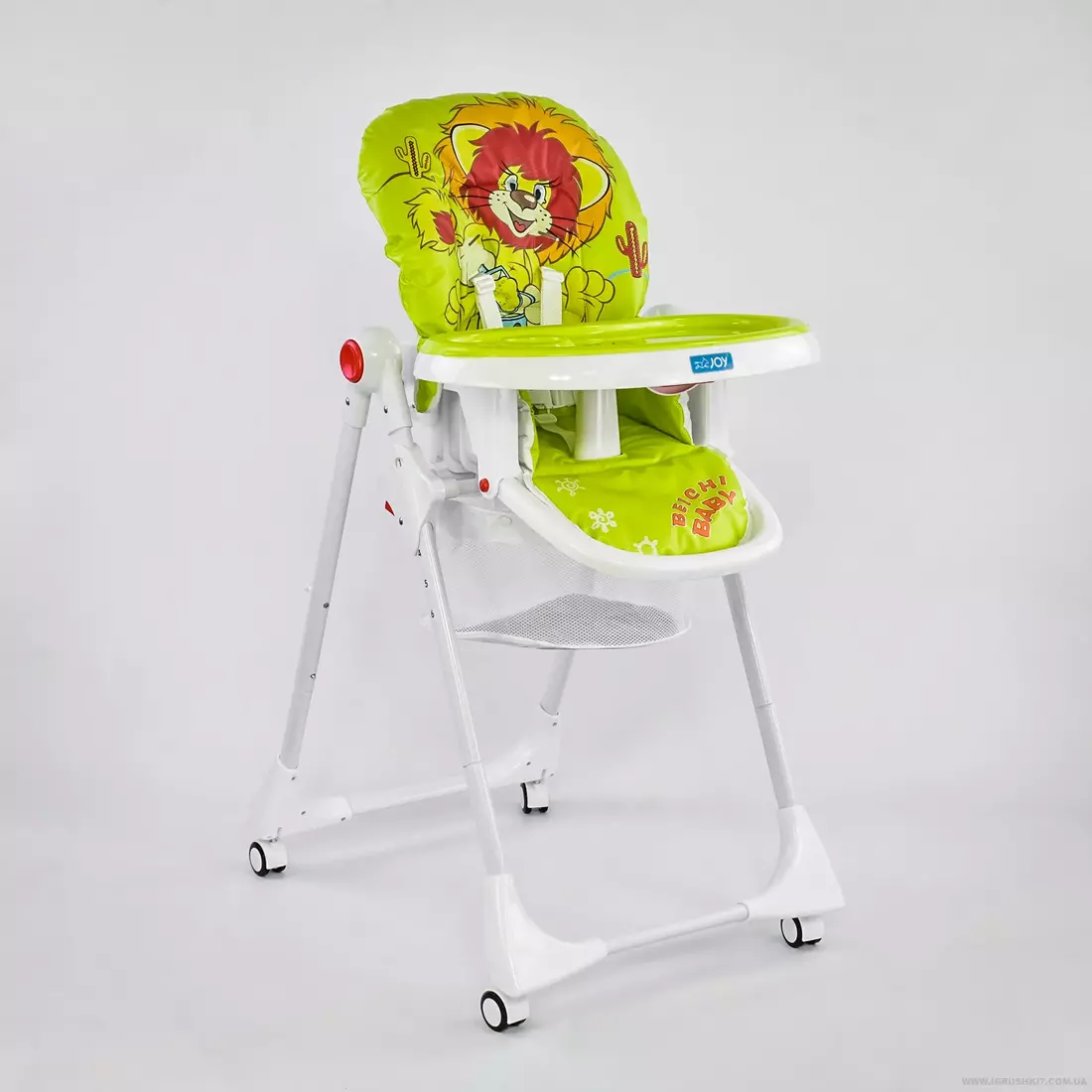 Стільчик JOY К-41208 - підходить для дітей від 6 до 36 місяців. Ви можете не переживати за безпеку дитини, оскільки його 5-ти точкові ремені безпеки надійно фіксуватимуть навіть найбільшого непосиду. Для зручності годування в стільниці передбачена ніша для склянки, а також знімна таця. Матеріал оббивки що не промокає і відмінно миється. Стійкість стільчика забезпечують широкі, регульовані по висоті ніжки. А гальма на задніх і передніх колесах забезпечують високу стійкість стільчика на одному місці. Він дуже легко складається і займає мінімум місця у квартирі. Характеристики: • регульована стільниця: в 3-х положеннях • Ремені безпеки: п'ятиочкові • Гальмо на передніх і задніх колесах • Регульована спинка сидіння: в 3-х положеннях • Регулюється по висоті: в 6-ти положеннях • Кошик для приладдя