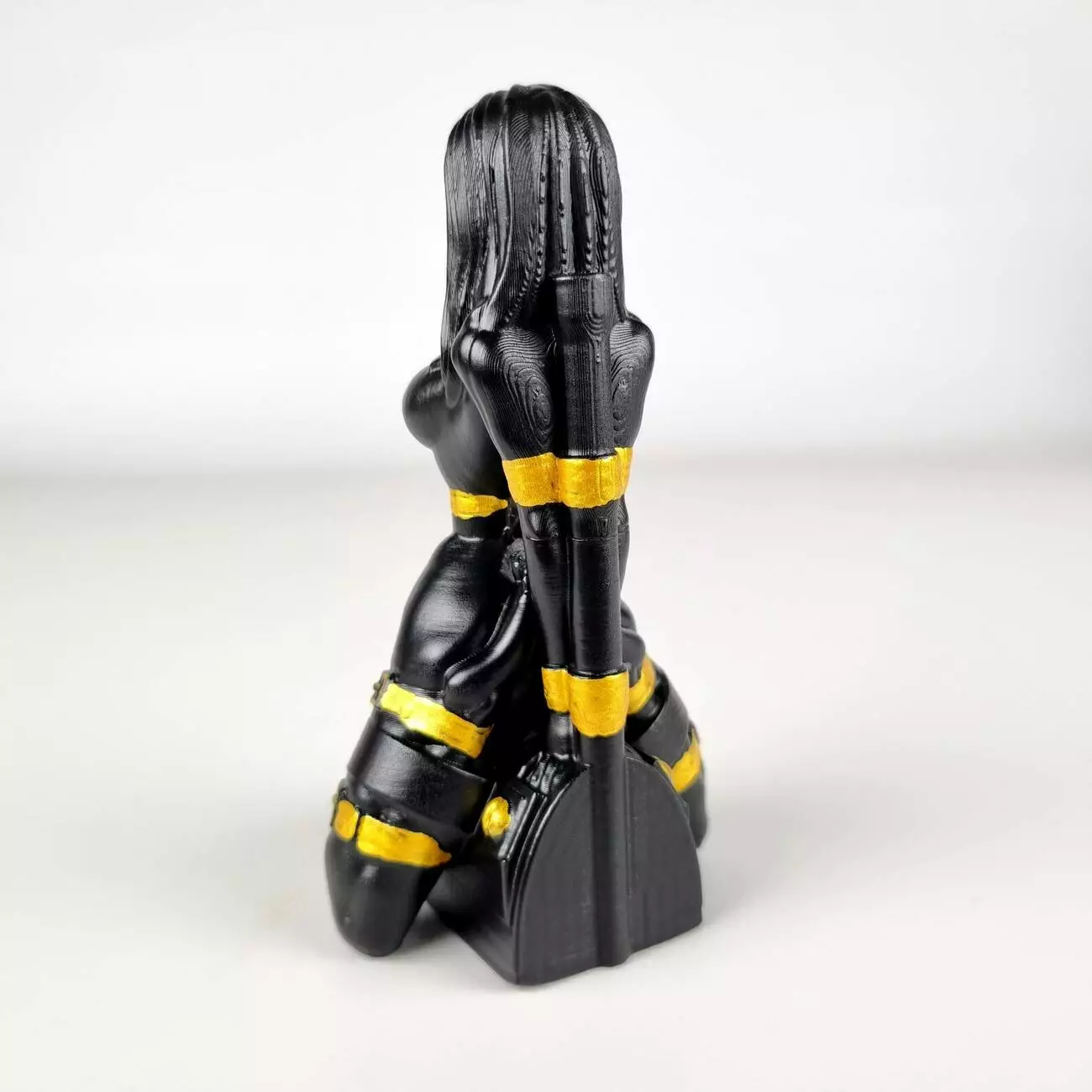 Ця богиня, надрукована на 3D-принтері з пластику, зображує оголену жінку, яка сидить на колінах на коробці в позі, що кричить про впевненість та силу. Кожна деталь розписана вручну до досконалості, що робить її справді неповторною.