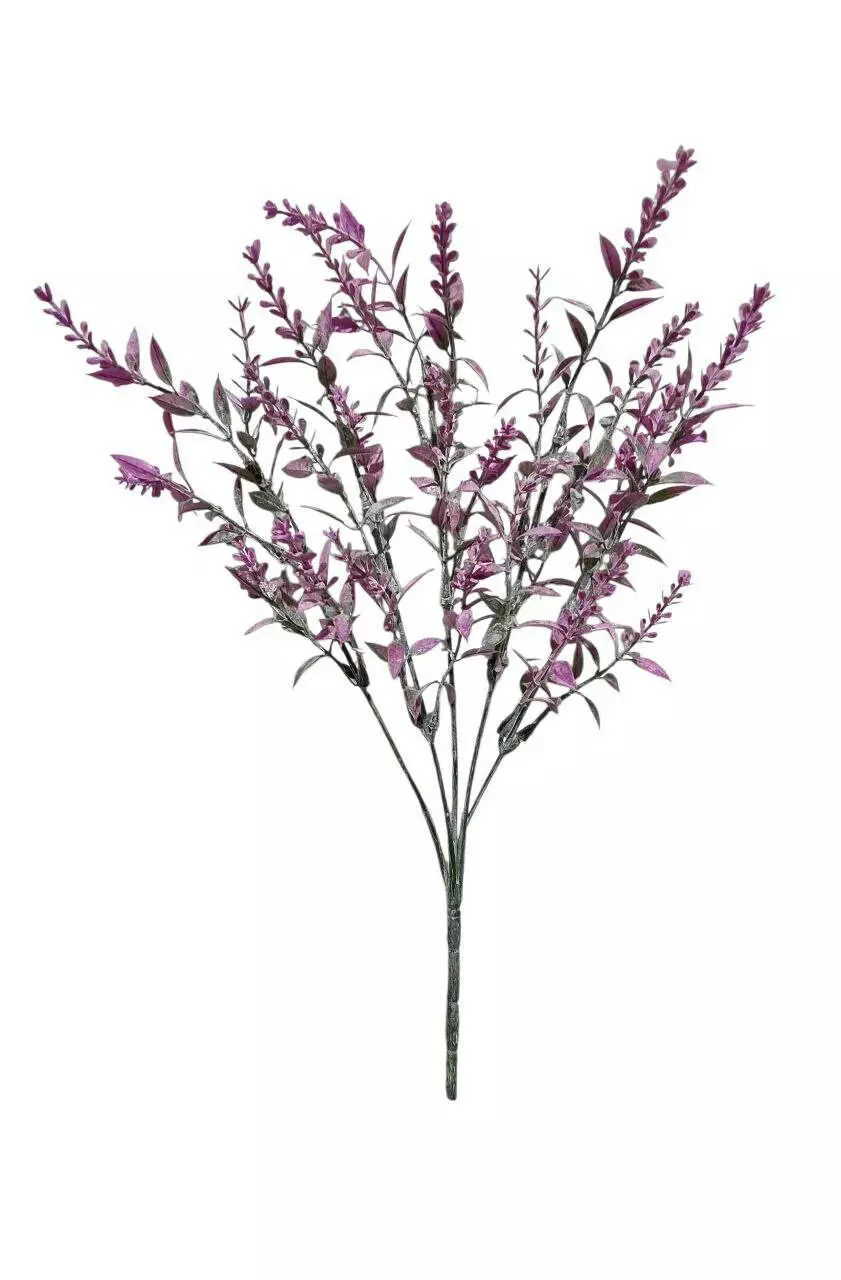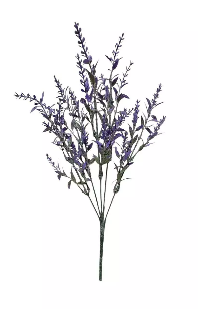 Штучна добавка пластмасова лаванда на 5 гілок, висотой 34 см. У прозорій фабричній упаковці зібрано 5 шт однакового забарвлення.