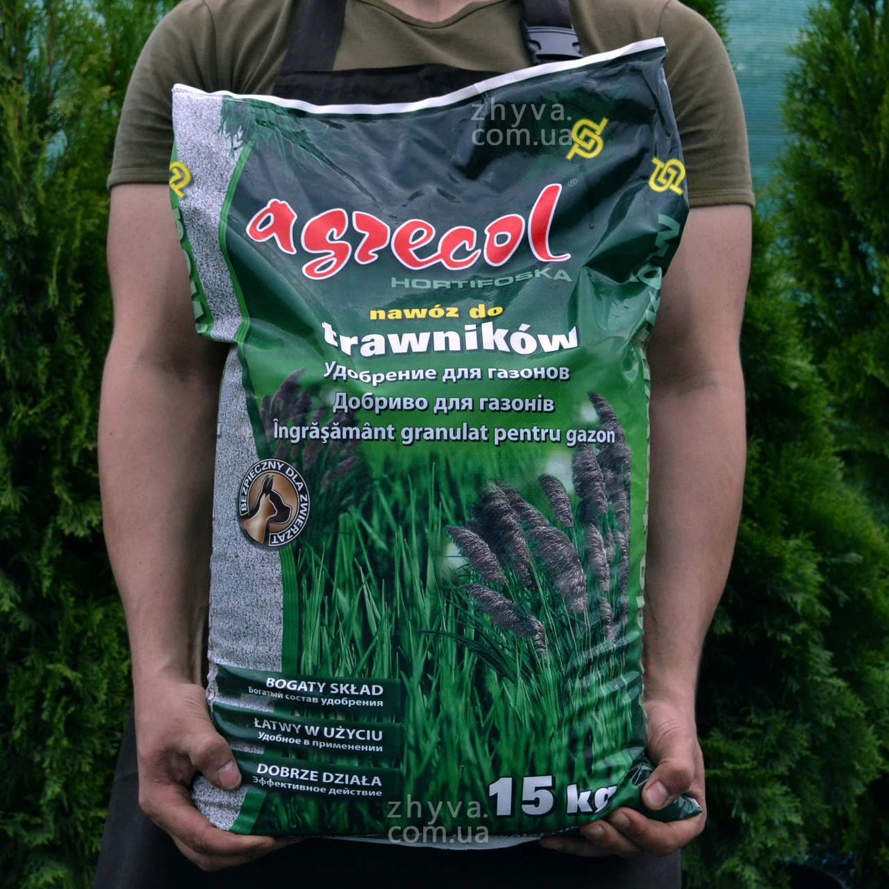 Добриво «Agrecol - швидкий килимовий ефект - Комплексне добриво з підвищеним вмістом азоту (N) 34%, призначене для газонов.Состав: Азот (N) - 34%. застосовують для інтенсивно поливних і часто скошуваних газонів, через такий інтенсивної експлуатації і видалення скошеної трави з поверхні газонів, бракує азоту, потрібного для відтворення м'якоті тканин. Це проявляється через втрату кольору трави та її підвищену порідіння. Щоб подібне запобігти, рекомендуємо використання добрива для газонів швидкий килимовий ефект із серії сипучих добрив «Agrecol».