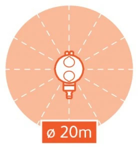 Максимальна зона покриття - 314 кв.м. (Максимальний діаметр 20