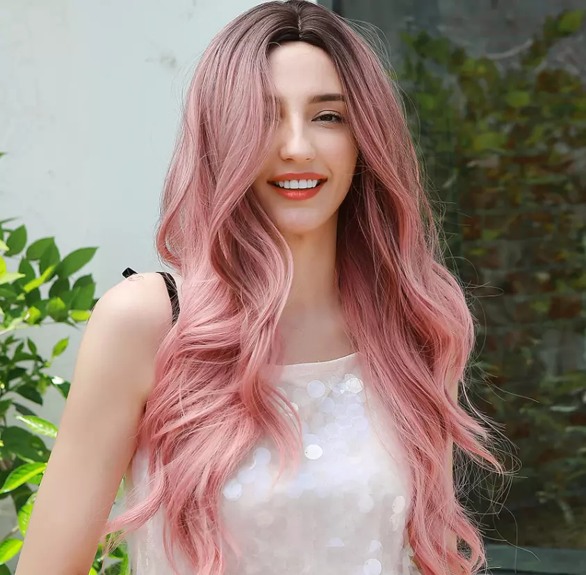 Довгі перуки RESTEQ - 66см, чорно-рожевий градієнт, хвилясте волосся без чубчика, косплей, аніме
