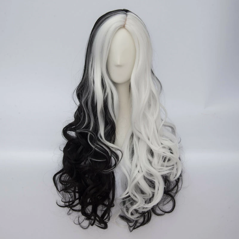 Довгі перуки RESTEQ - 70см, Чорно-білі хвилясті волосся, косплей, аніме