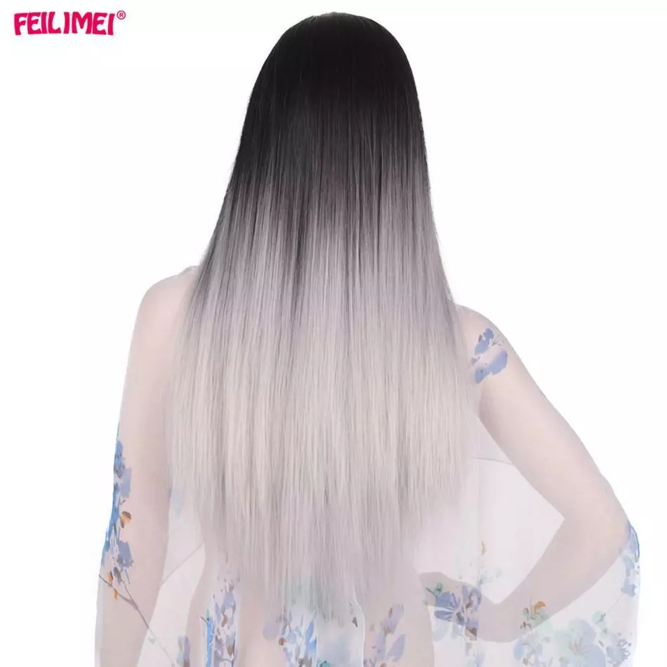 Довгий сірий перуку RESTEQ 60 см, прямі волосся, перуки з високоякісних термостійких волокон синтетичних