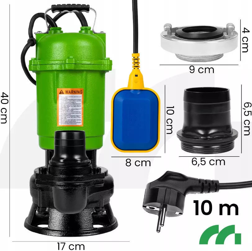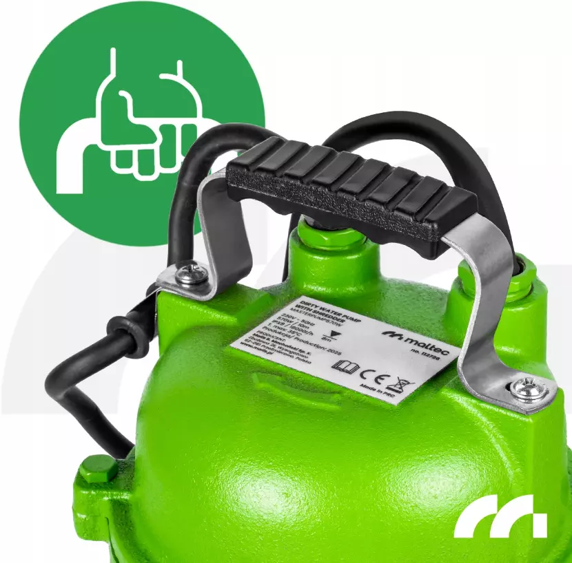 MasterPump570W имеет исключительно прочный корпус, полностью изготовленный из чугуна, что делает его устойчивым к механическим повреждениям, воде и химическим веществам, присутствующим в сточных водах. В отличие от многих насосов, изготовленных из пластика, эта модель создана для длительной и безотказной работы в сложных условиях.
