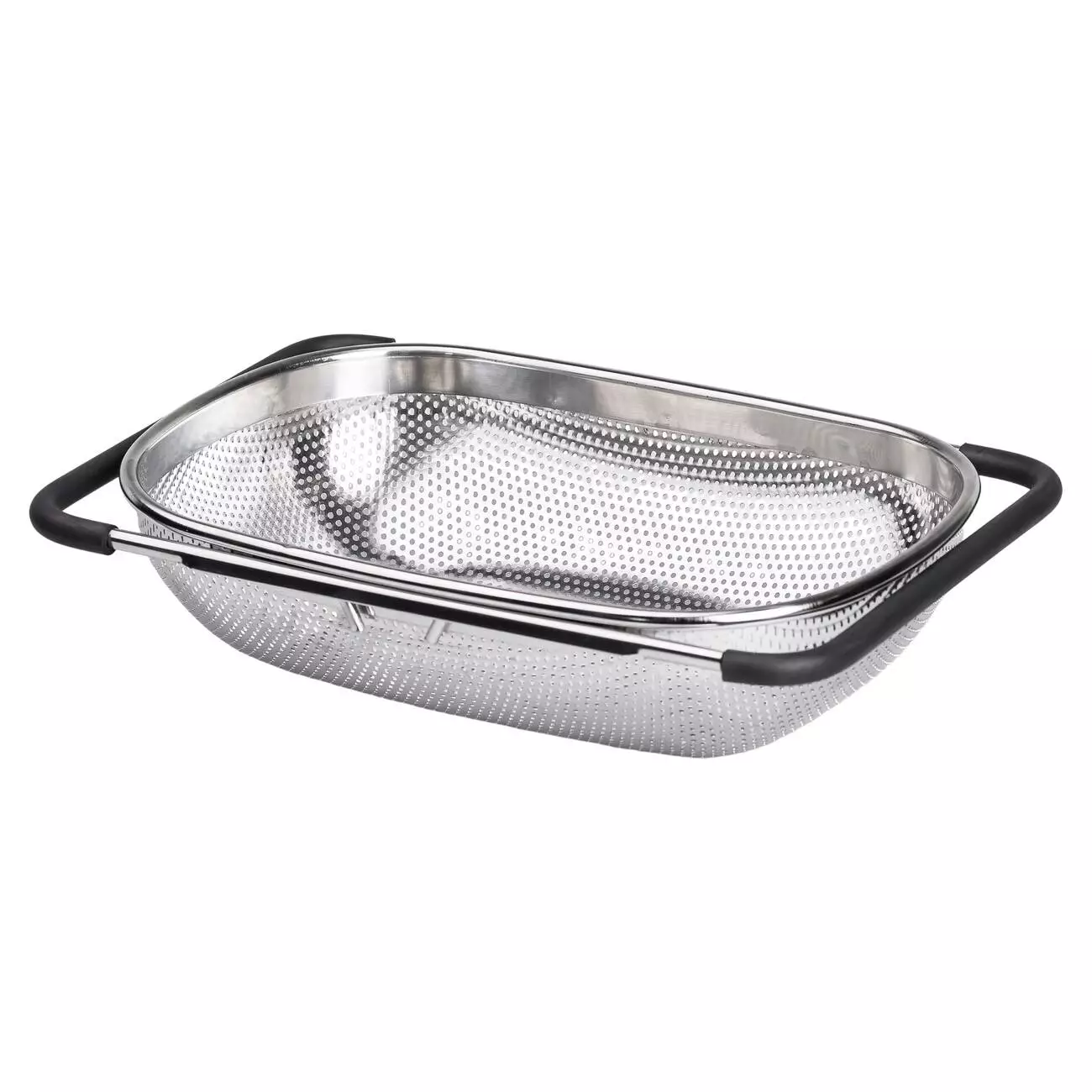 Особливістю моделі є телескопічні ручки, які легко розсуваються, адаптуючи друшляк до різних розмірів раковини. Вони оснащені ПВХ-накладками, що запобігають ковзанню і забезпечують зручність у використанні. Така конструкція дозволяє надійно закріпити сито над раковиною, звільняючи руки під час роботи, що особливо корисно при великих обсягах промивання продуктів.
