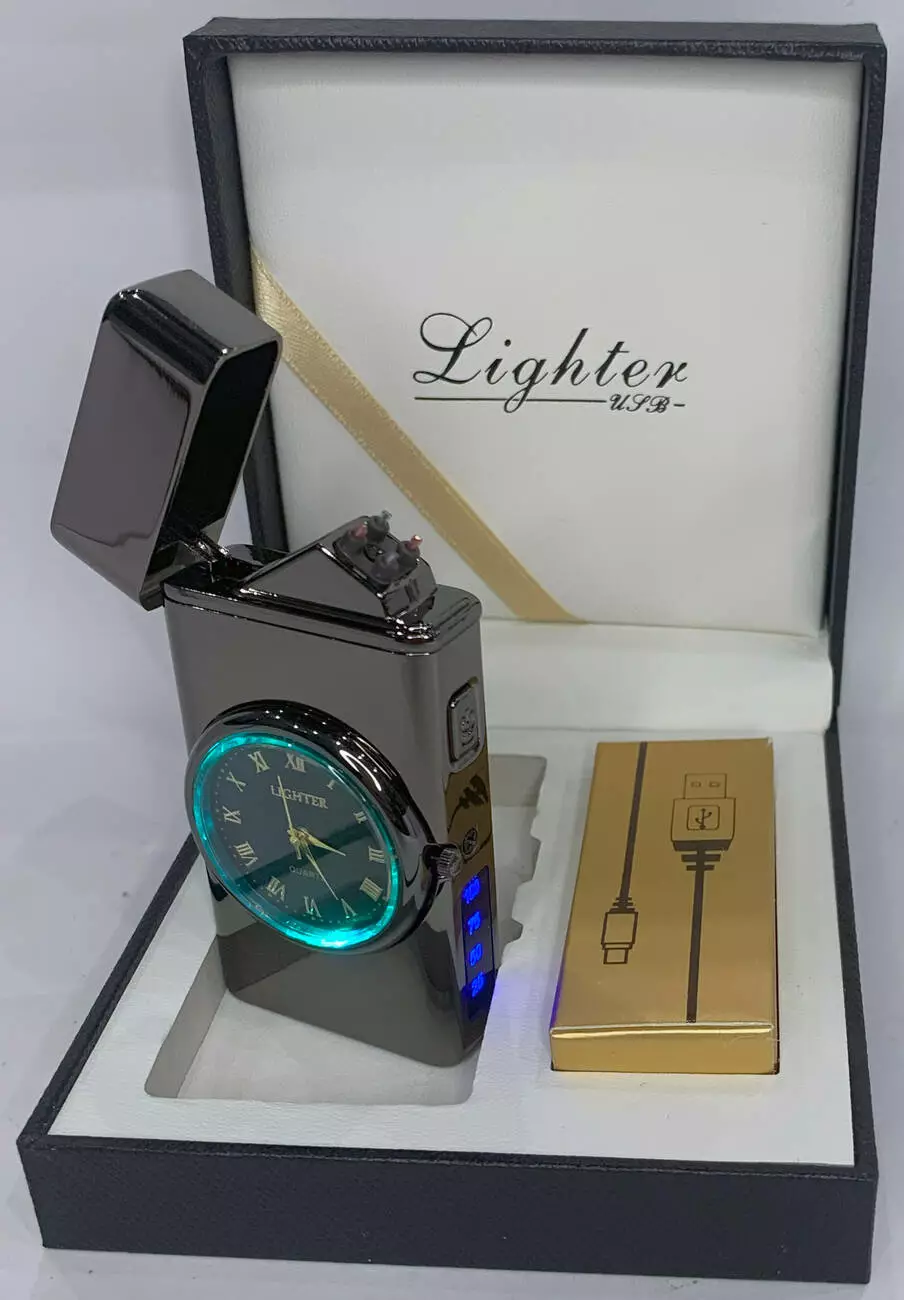 Дуговая электроимпульсная зажигалка с часами и фонариком⚡️????⏱ LIGHTER HL-466 Black