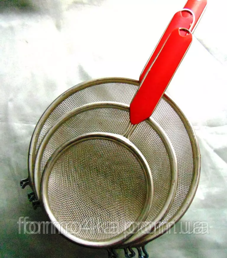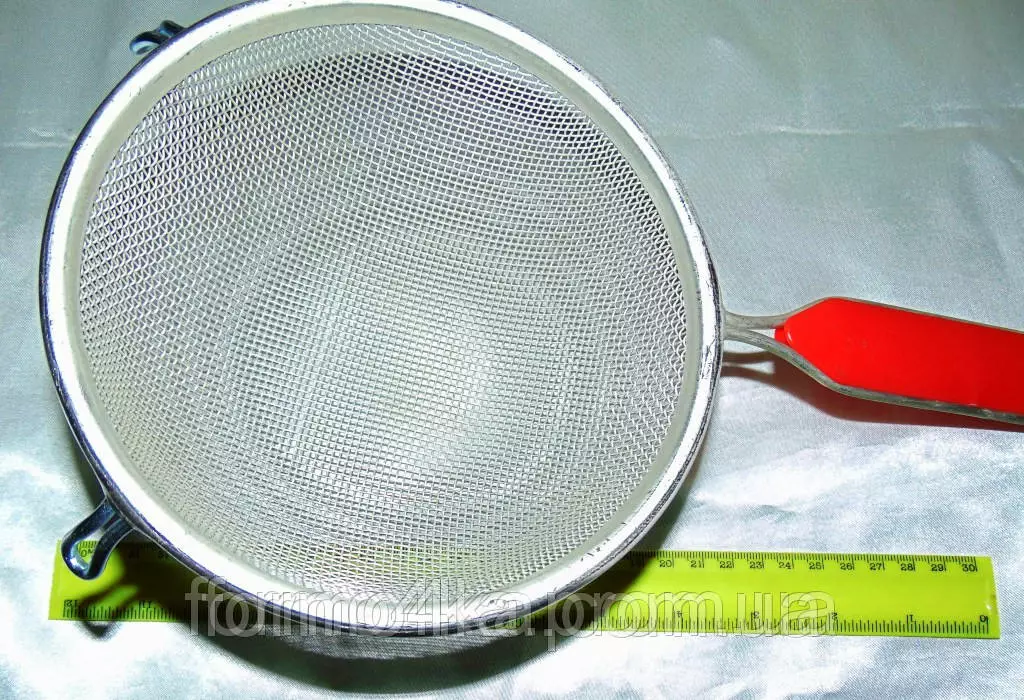 Царапать, скоблить острыми предметами сетку в дуршлаге не