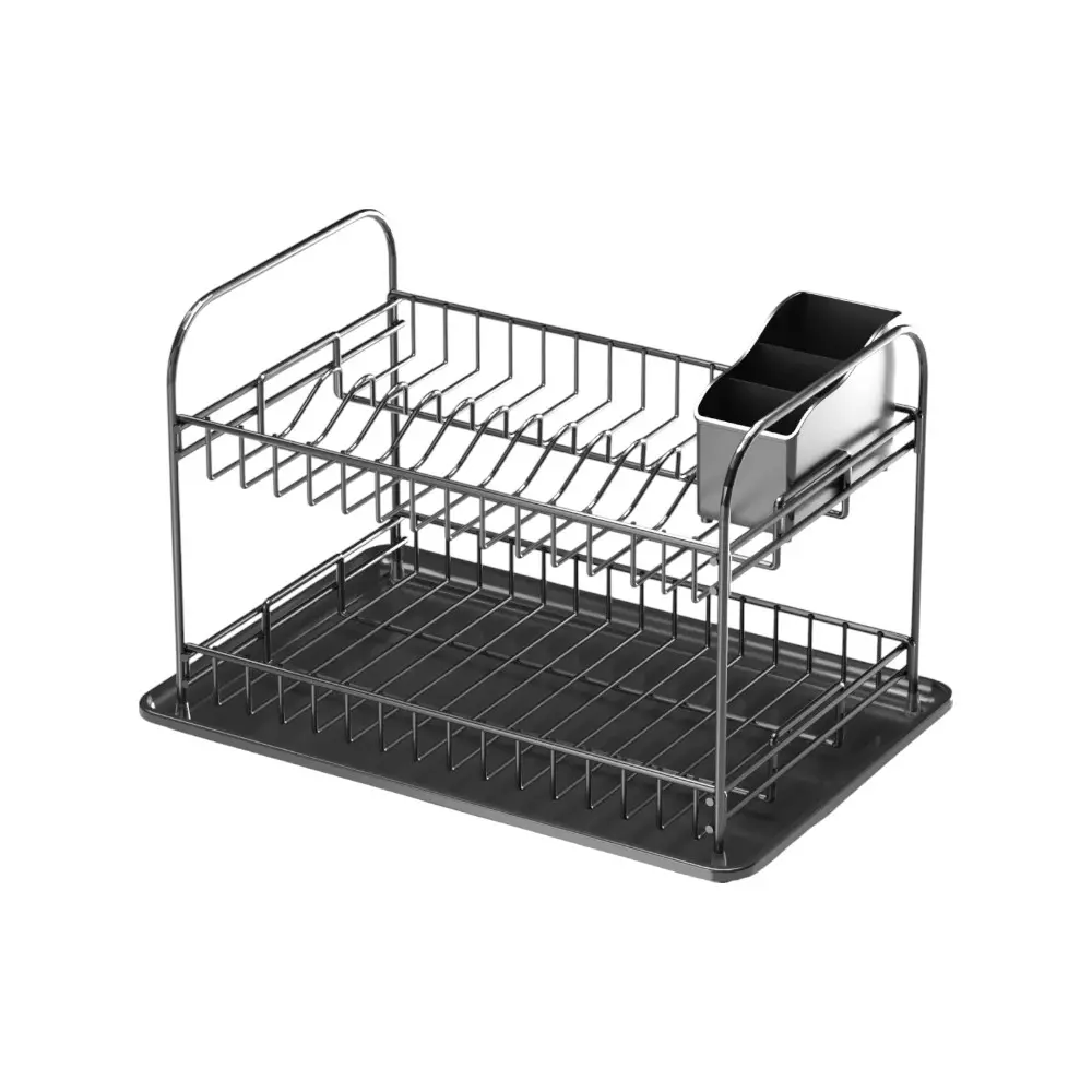 Дворівнева сушарка для посуду чорна Tekno-tel KB007: Максимальний простір та елегантність для вашої кухні!
