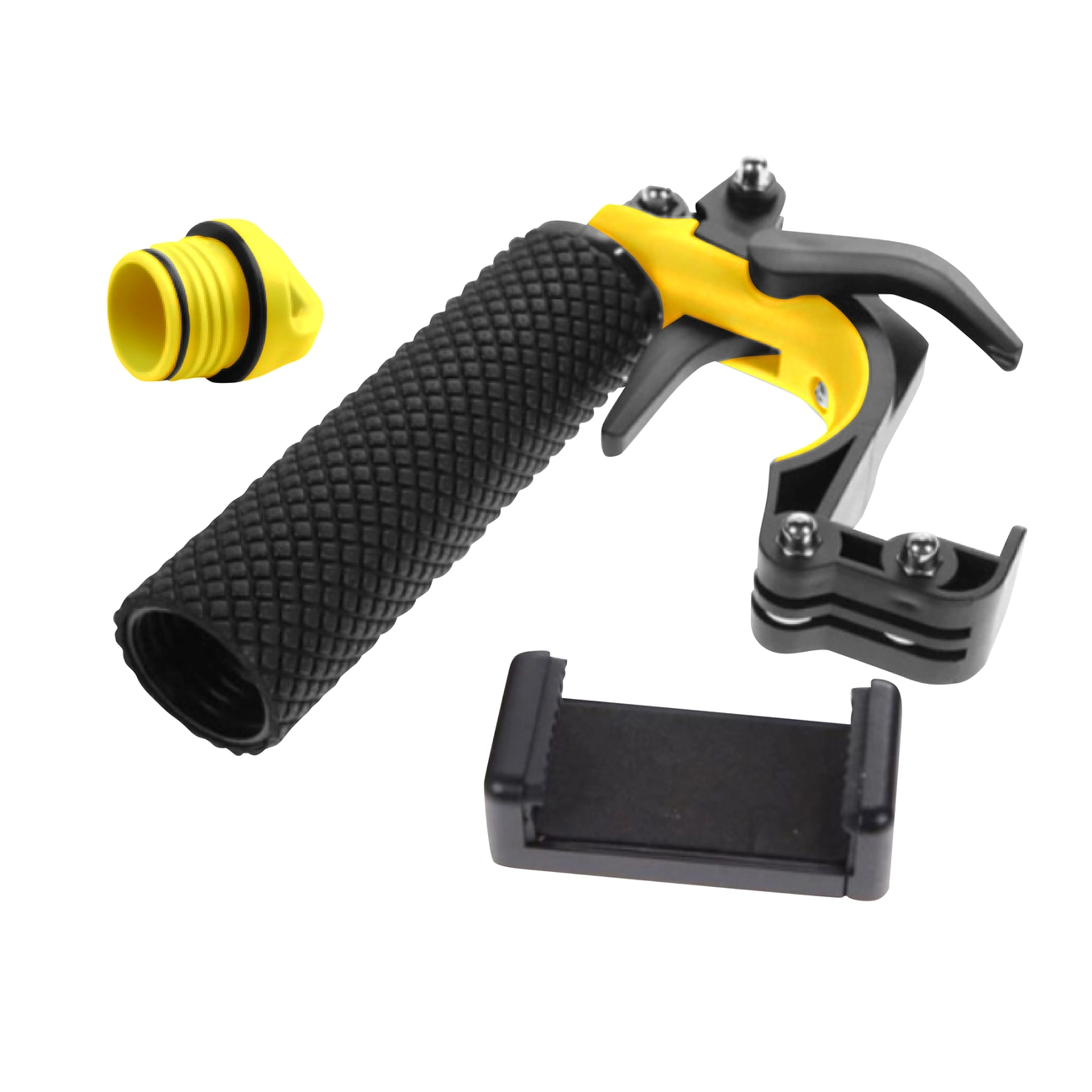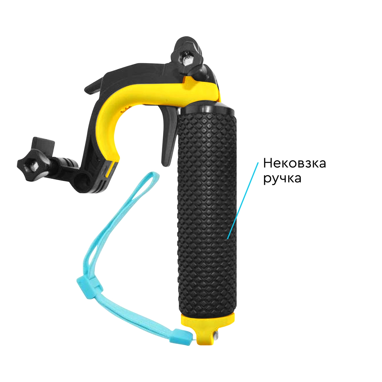 Крепление для камеры и смартфона также оборудовано нескользящей ручкой-поплавком. Это значит, что можно создавать крутые видео и фото не только одновременно на суше, но и в воде. В ручке присутствует небольшое внутреннее хранилище для важных мелких вещей, которые не хочется потерять во время прогулки или заплыва.
