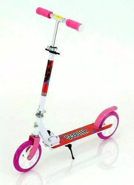 <p><strong>Двухколесный самокат на большых</strong> <strong>20см колесах бело розового цвета</strong>- яркий и удобный самокат, оснащен мягкими полиуретановыми колесами, ножным тормозом и возможностью регулировки руля по высоте (3 положения от 75 до 99 см). Стильный дизайн привлечёт внимание всех окружающих и понравится Вашему ребёнку. <strong>Складной двухколесный самокат 460</strong> имеет прочную конструкцию, 2 колеса обеспечивают максимальную маневренность. В самокате регулируется ручка что позволяет кататься детям постарше. </p><br /> <p><strong>Характеристика:</strong><br /><br /> Колеса: PU - МЯГКИЕ, НЕ СТУЧАТ!<br /><br /> Материал самоката: алюм+сталь<br /><br /> Диаметр колес – 20 см. Ширина колеса - 3 см.<br /><br /> Руль регулируется в 3 положениях: от 75 до 99 см.<br /><br /> Ширина руля - 32 см.<br /><br /> Диаметр ручек 4 см.<br /><br /> Размеры подложки: длина 46 см, ширина -11 см,<br /><br /> Высота от пола до подножки - 12 см.<br /><br /> Ножной тормоз.<br /><br /> Подставка.<br /><br /> Складная конструкция.<br /><br /> Размер коробки: 78*26*12 см.<br /><br /> Максимальная нагрузка: 100 кг.<br /><br /> Самокат оснащен боковой ножкой для вертикальной парков</p><br />