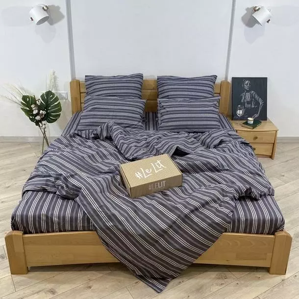 Двуспальное постельное белье LeLIT 0833 темно-серое с принтом "Полоса"