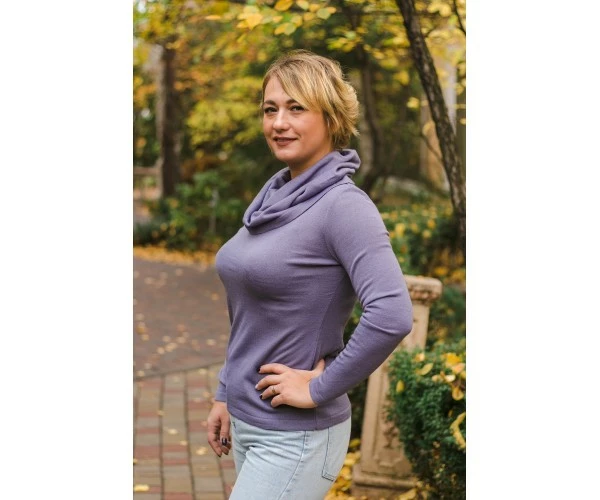 Однотонный облегающий джемпер глубокого дымчатого цвета с воротником типа "хомут". Мягкое, приятное на ощупь вязаное полотно средней плотности облачает нежным уютом свою обладательницу. Джемпер NITA Л 640 фиалковый - идеальный вариант базового гардероба любой женщины. Гольф хорошо сочетается со многими моделями юбок, кардиганов, жилетов и жакетов офисного стиля.