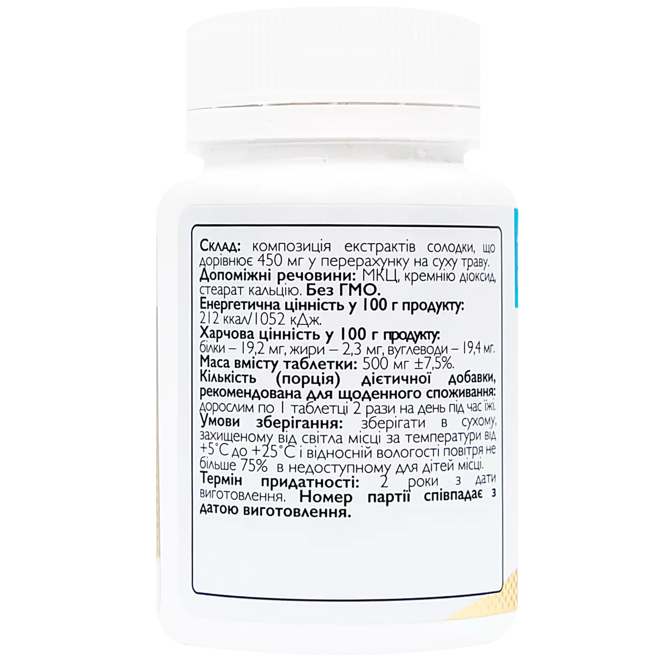 Композиція екстрактів солодки, що дорівнює 450 мг у перерахунку на