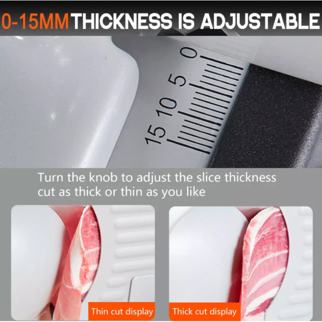 Регульована товщина : легко оберіть товщину скибочки від 1 до 15 мм за допомогою ручки плавного керування — ідеально підходить для будь-чого: від м’ясних делікатесів до приготування сендвічів