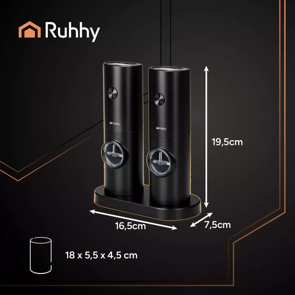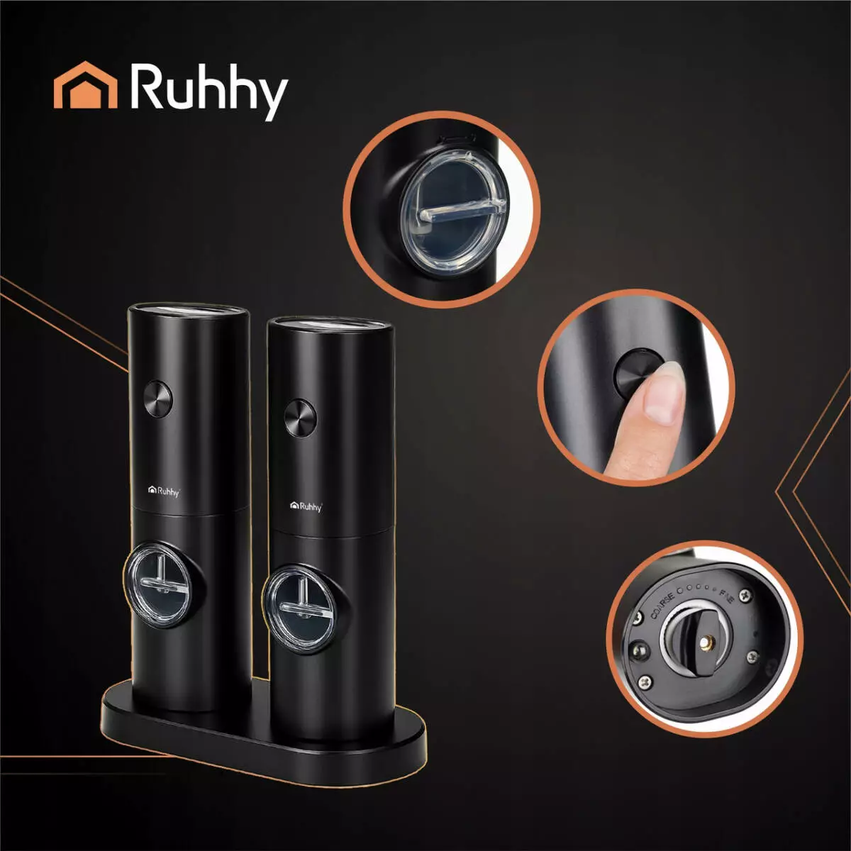 Електричні млинки RUHHY – це набір із двох сучасних пристроїв для мелених спецій, які поєднують у собі елегантний вигляд і максимальну функціональність. Завдяки керамічному механізму та електроприводу, млинки забезпечують точне та рівномірне помелення солі, перцю та інших спецій. Вони ідеально пасують до будь-якого інтер'єру — від сучасного до класичного.