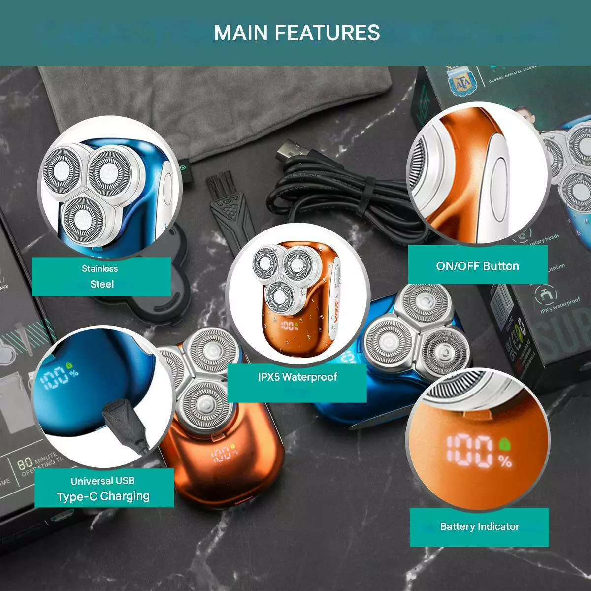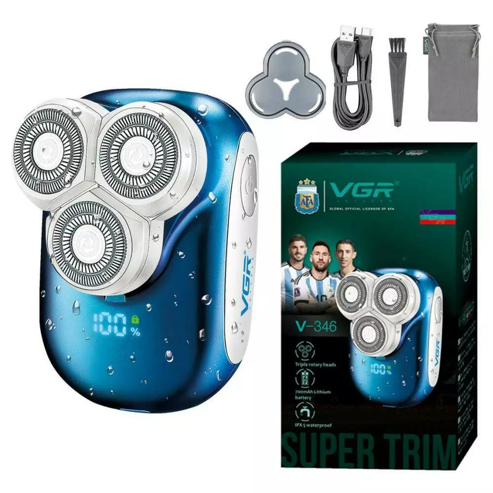 Електробритва VGR V-346 BLUE, роторна, IPX5, LED display