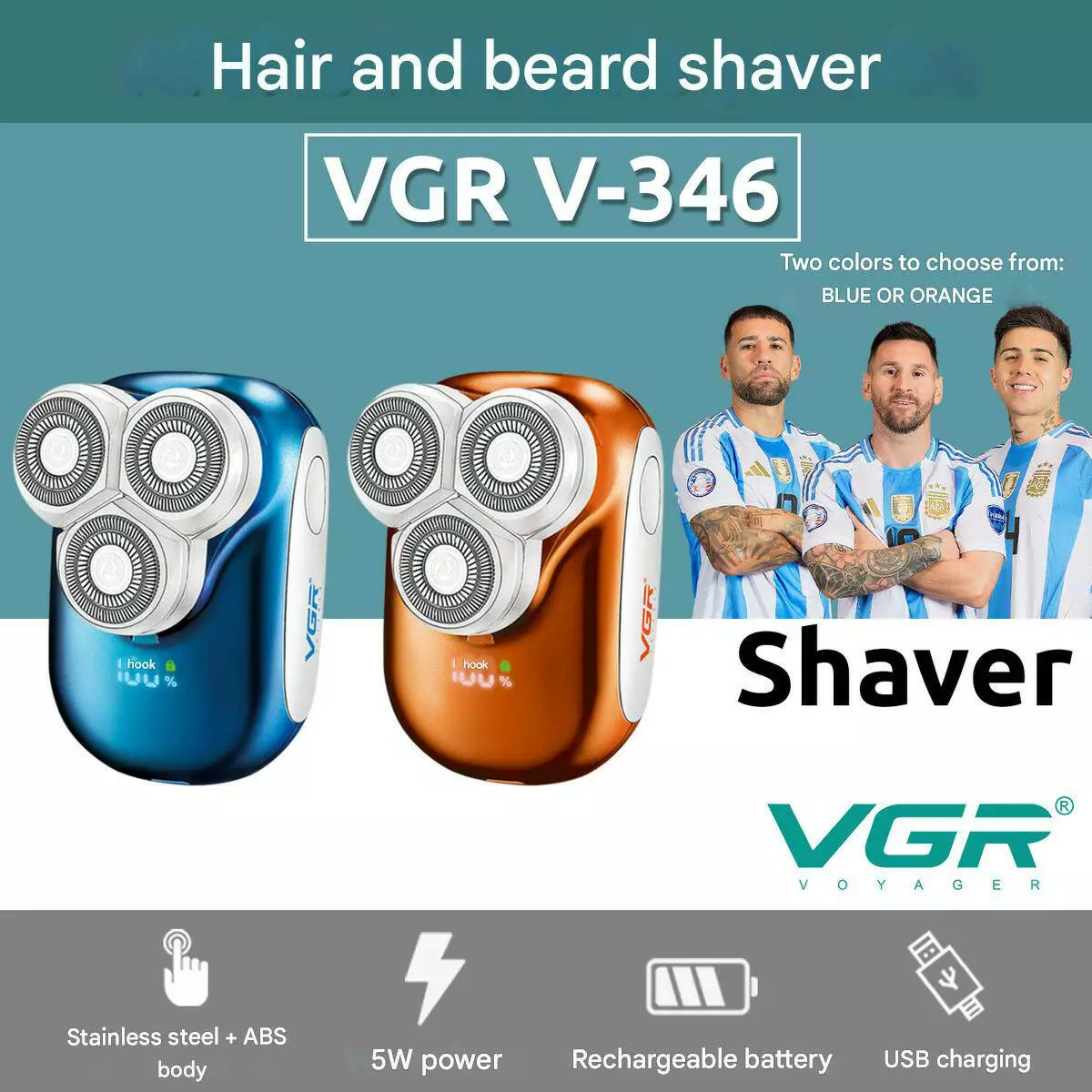 Електроритва VGR V-346 Blue — роторний шейвер з вологозахистом IPX5 та LED-дисплеєм