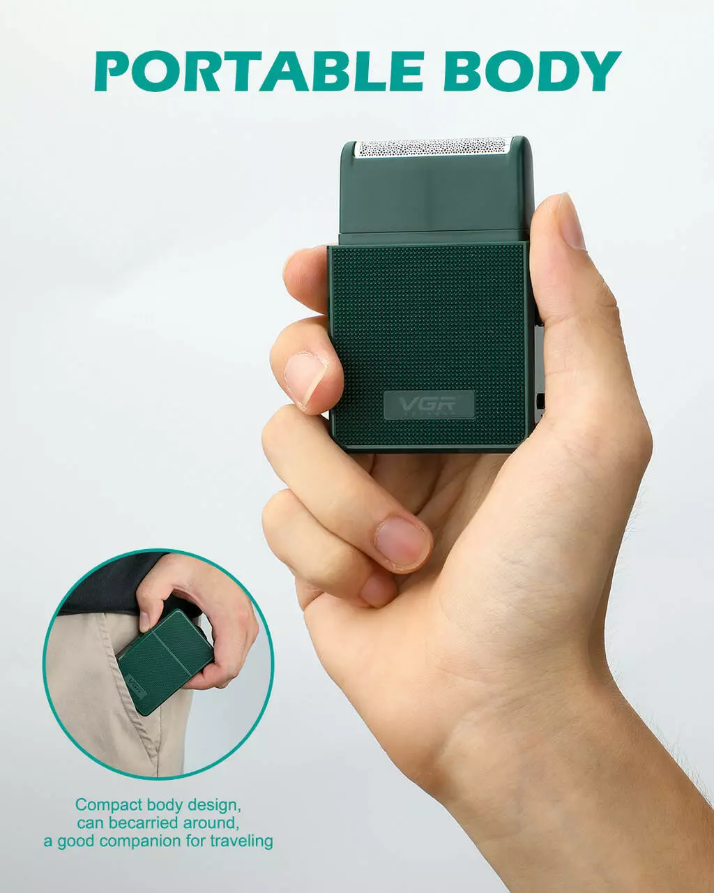 Електробритва VGR V-376 GREEN шейвер, висувний триммер