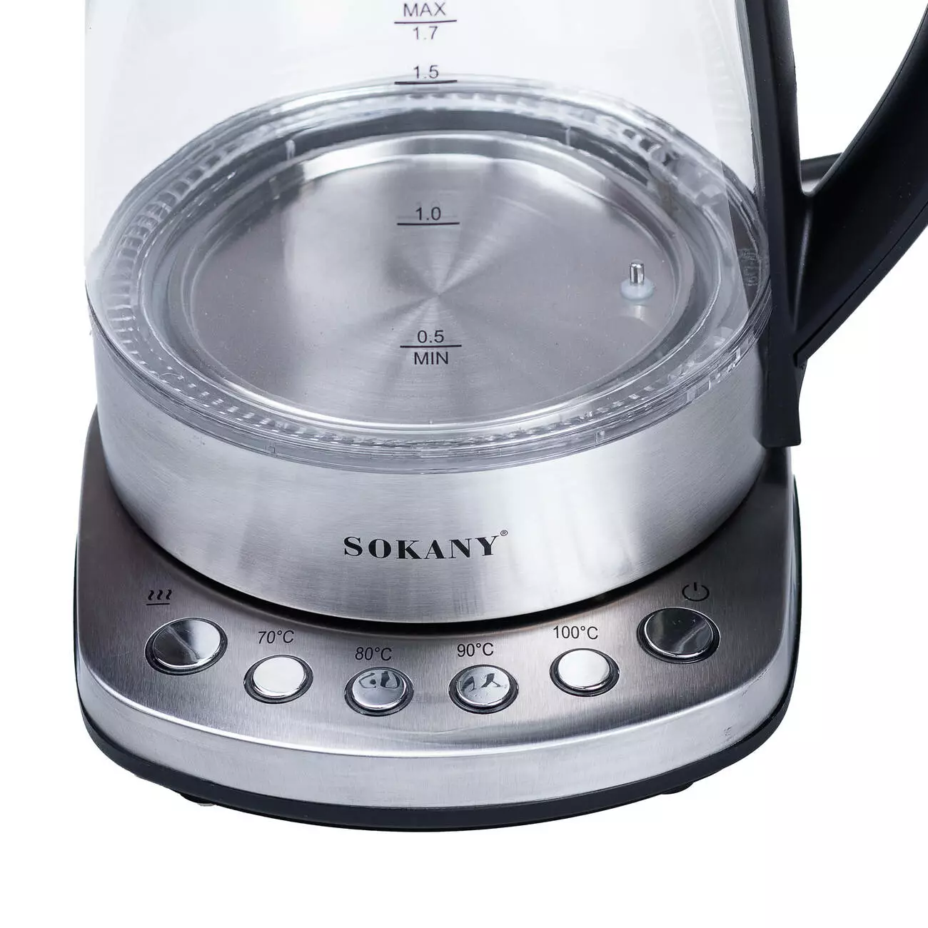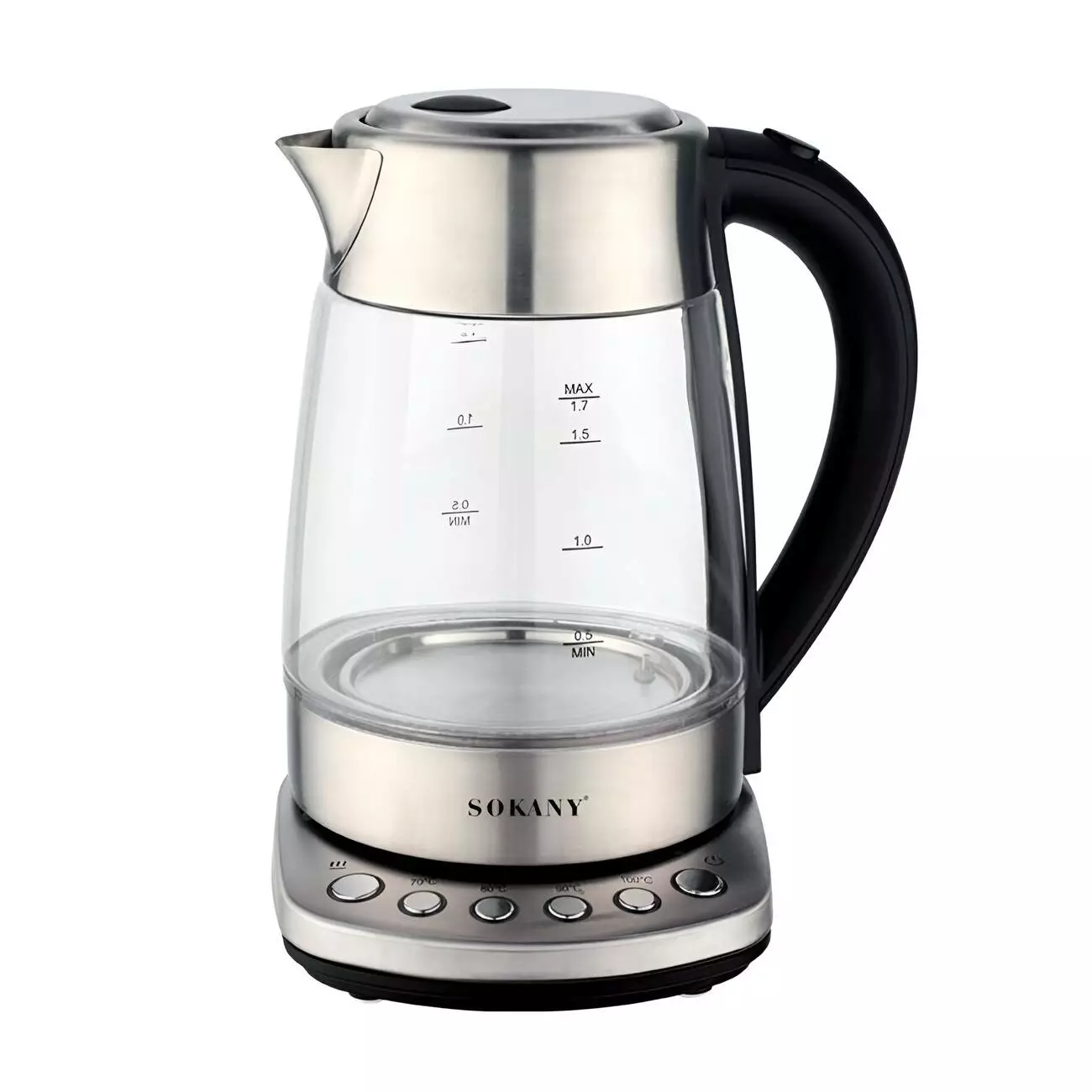Електрочайник скляний Sokany SK-09003 з підтримкою та регулюванням температури 1,7 л, сталь