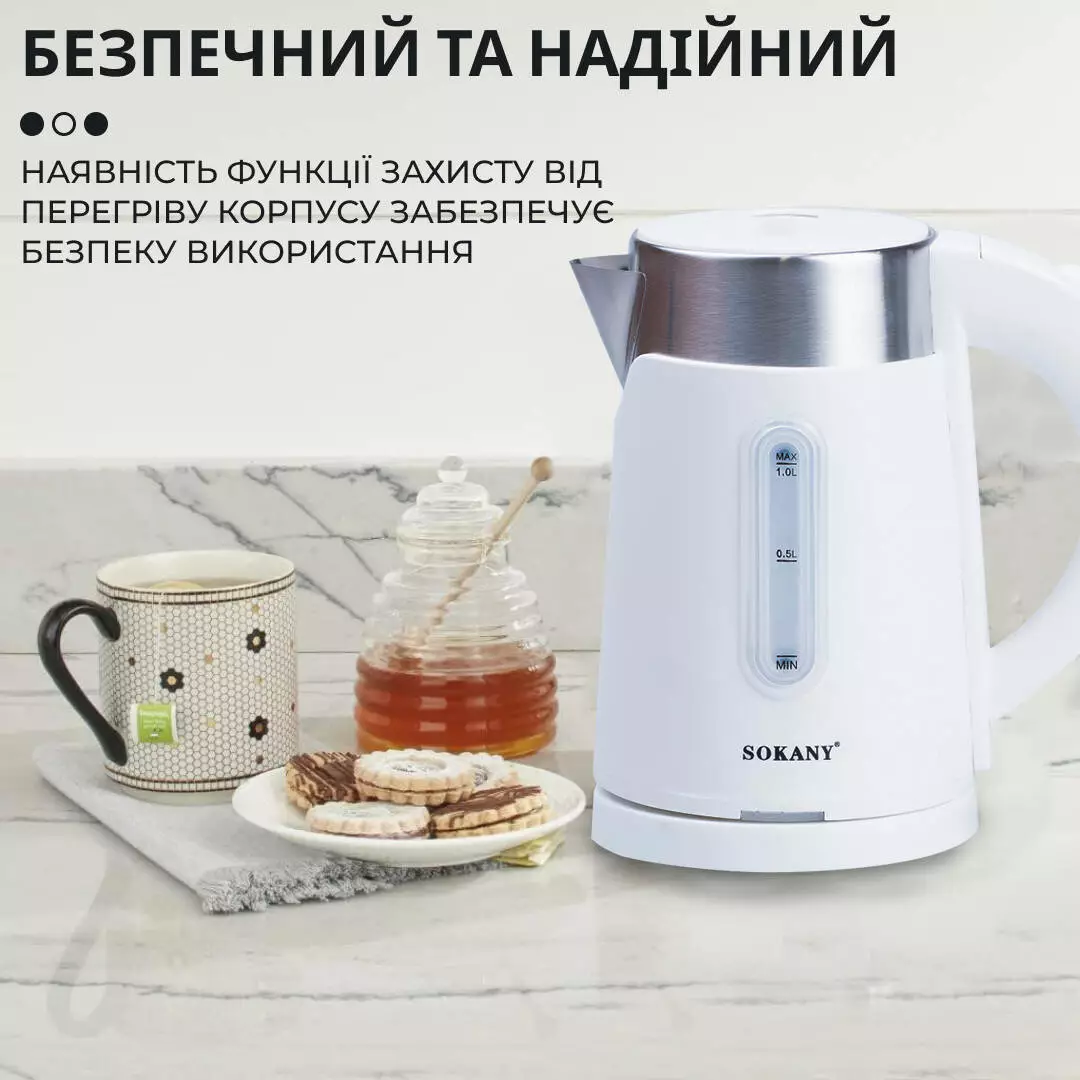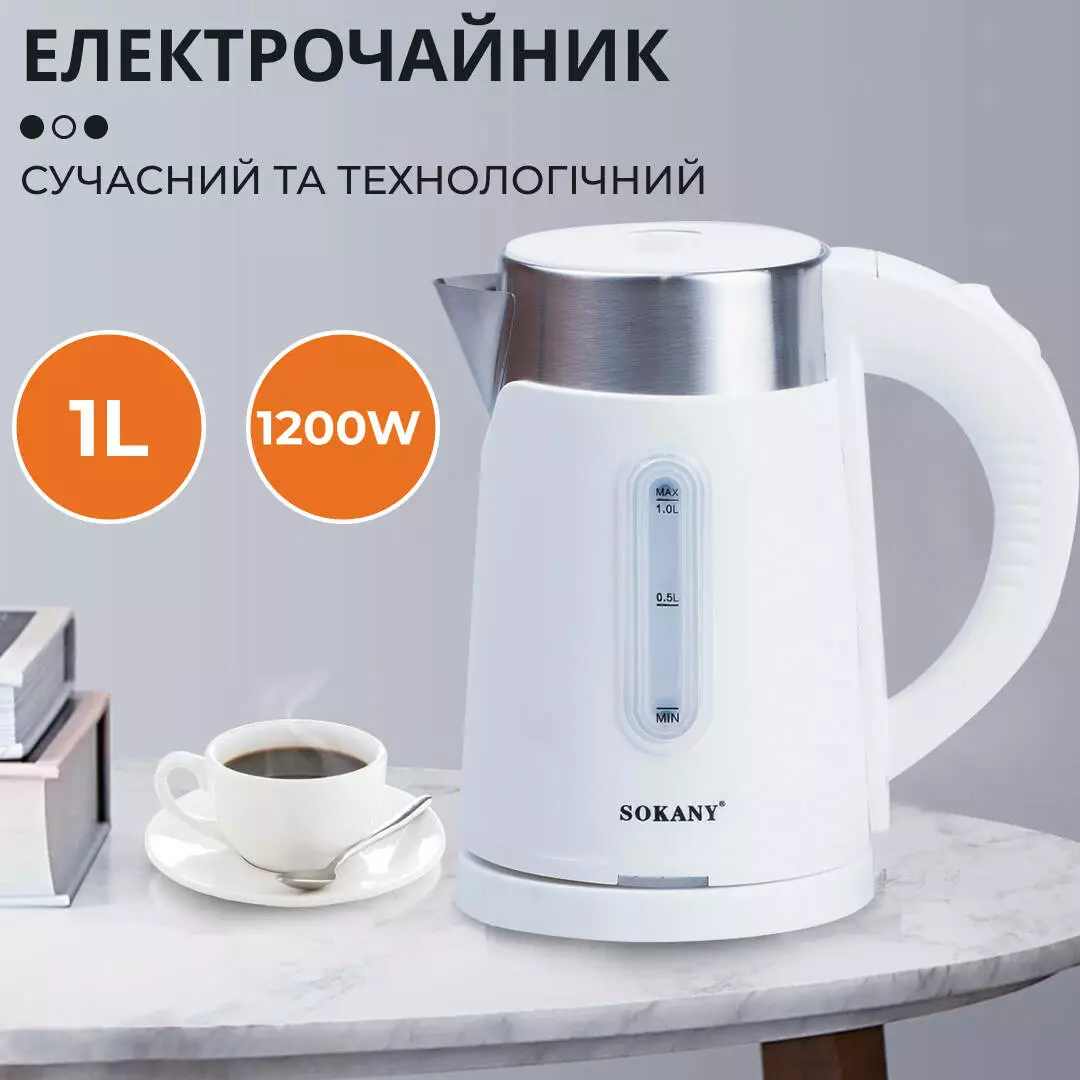 Компактний та зручний електричний чайник Sokany SK-0808W об'ємом 1 літр – ідеальне рішення для тих, хто цінує економію місця. Висота 17 см і діаметр 12 см дозволяє розмістити чайник навіть на невеликій кухонній полиці або робочому столі.