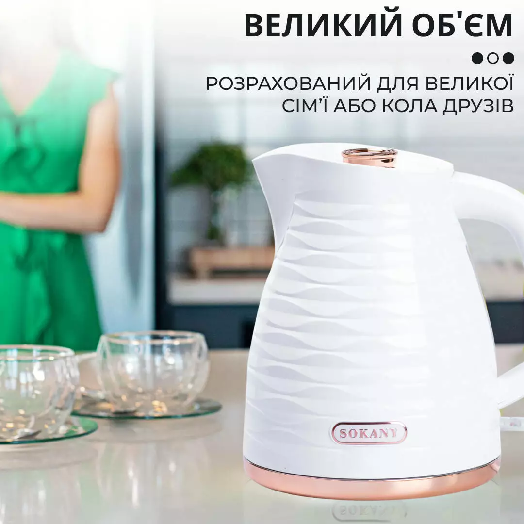 Електрочайник Sokany SK-1047 дисковий 1,7л, білий