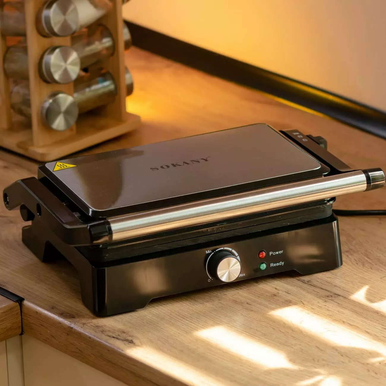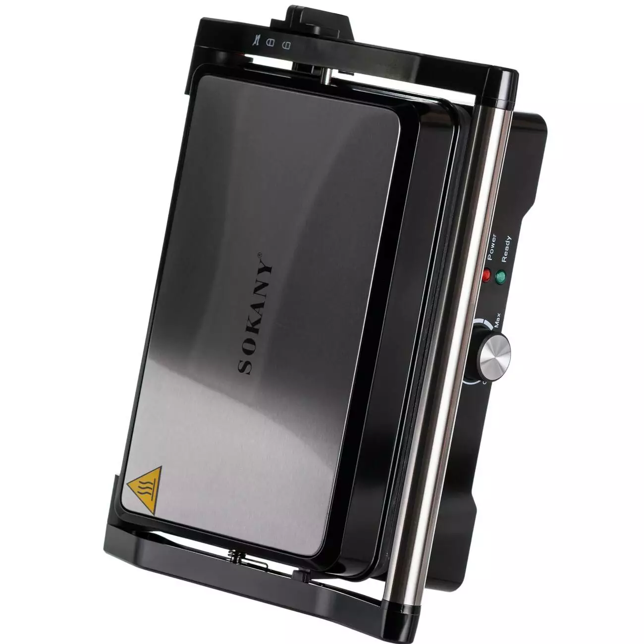 Електрогриль SOKANY SK-08026 - пристрій оптимальної потужності, що має просте управління та зручну експлуатацію. Це модель закритого типу, проте особливості конструкції дозволяють розкривати пристрій на 180 °, збільшуючи робочу площу. Гриль має оптимальну потужність для приготування овочів, м'яса та риби, а механічний регулятор дозволяє контролювати температуру та встановлювати необхідну залежно від товщини інгредієнтів.