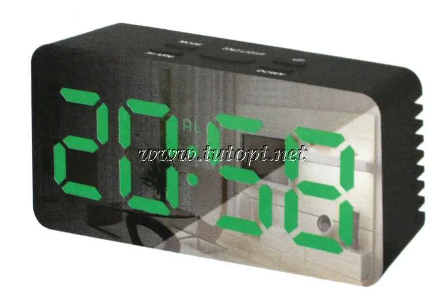Электронный будильник показывает индексацию времени в 24 часовом формате. Прибор имеет универсальный характер использования дома и в офисе. В любой интерьер устройство впишется прекрасно. Благодаря возможности программировать будильник, вы сможете просыпаться под приятную, любимую вами мелодию. Существует функция повторного срабатывания будильника, устройство ставится на ПАУЗУ. Светодиоды зеленого цвета ярко освещают цифры на дисплее. Видимость светодиодов одинаково яркая в любое время суток. Кнопки управления часами расположены на верхней панели, это обеспечивает комфортность эксплуатации прибора.