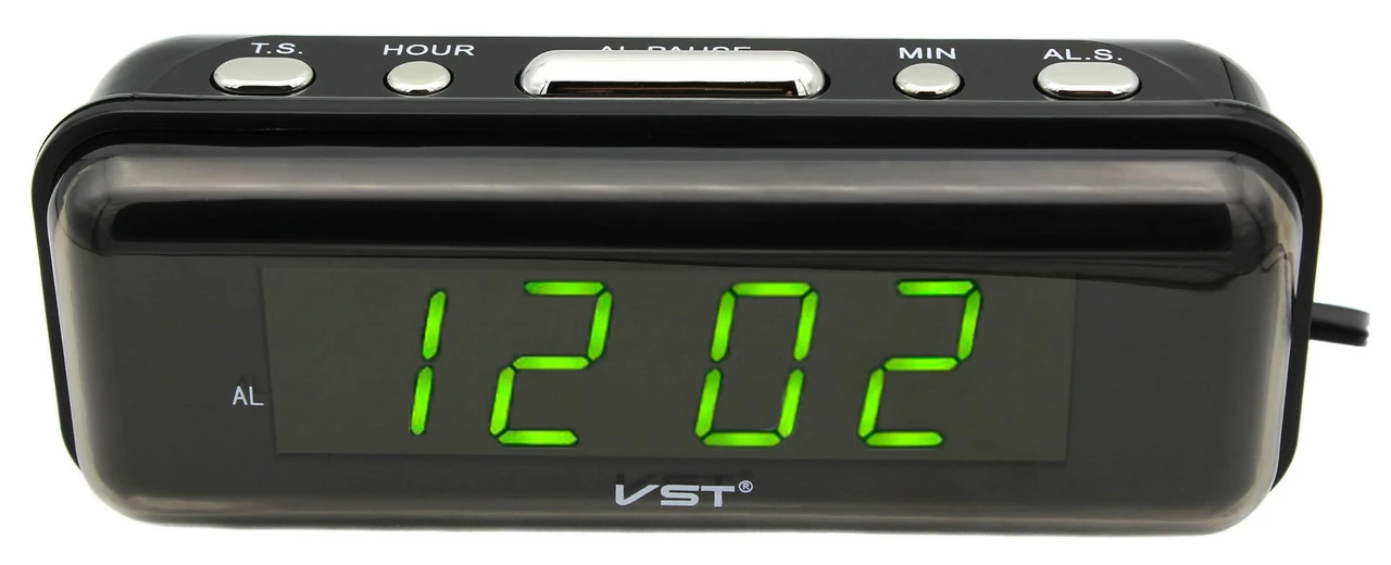 Электронный будильник VST-738 в розетку 220V + Температура "Зеленое свечение"