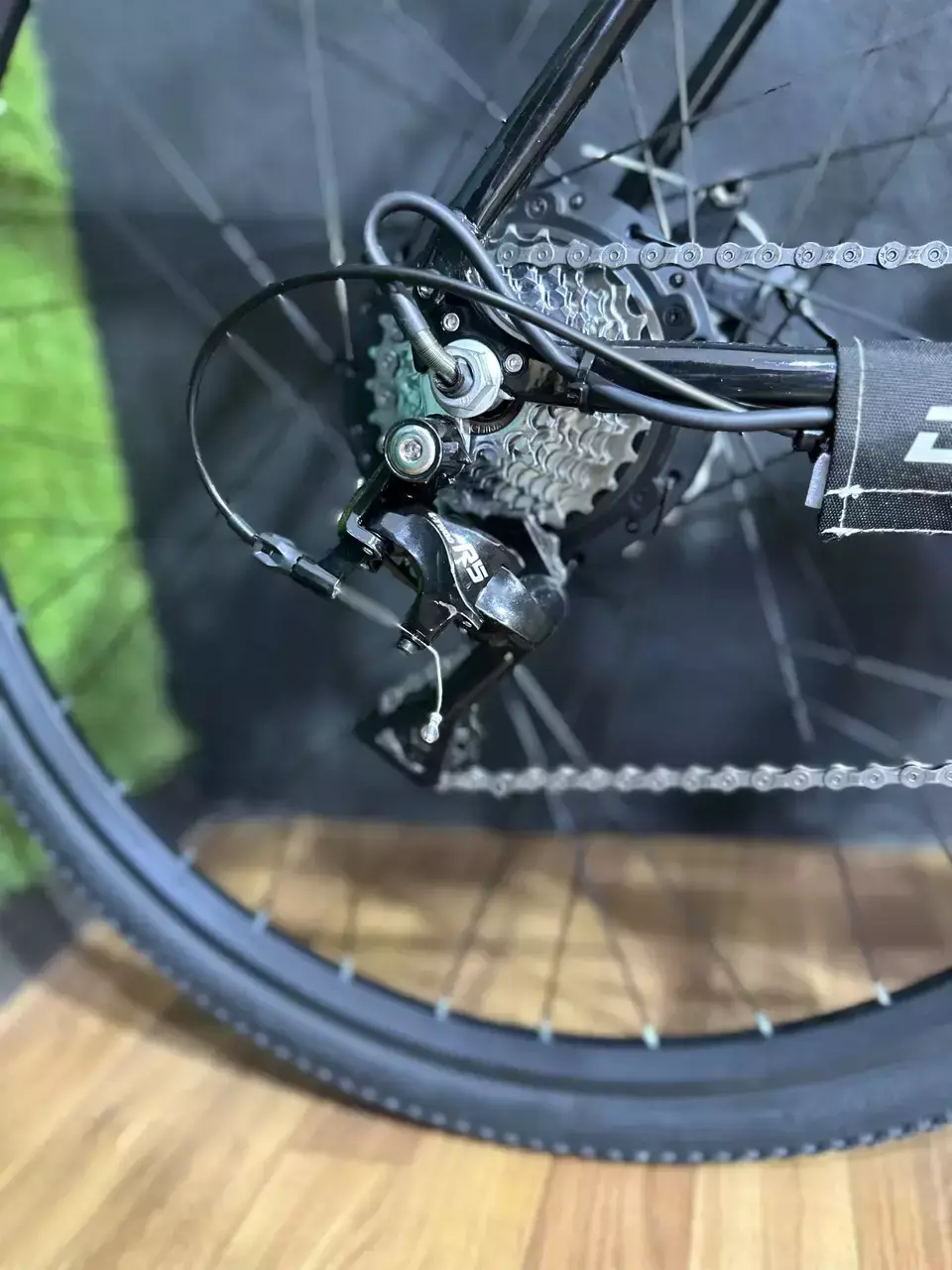 Електричний гравійний велосипед на алюмінієвій рамі з 28 колесами на задньому електроприводі. Потужність мотор-колеса 500W. Батарея міцно і надійно кріпиться до рами, блокується за допомогою ключа. В батарею інтегровано контролер, це зменшує кількість проводів і додаткових кріплень, боксів, сумок і т.і. Наружна частина корпусу контролера виготовлена ​​з алюмінію, що дає максимальне охолодження. Набір і весь велосипед виглядає гармонійно, збито.