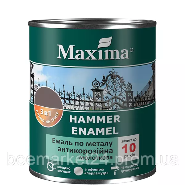 Являє собою емаль для металу 3в1, яка функціонально поєднує в собі: