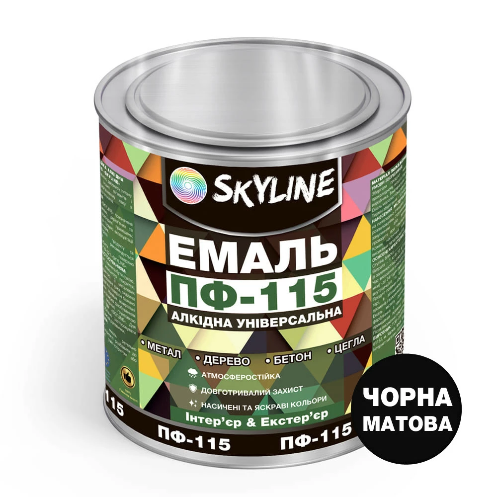 Эмаль ПФ-115 алкидная универсальная атмосферостойкая «Skyline» Черный матовый 2.5 кг