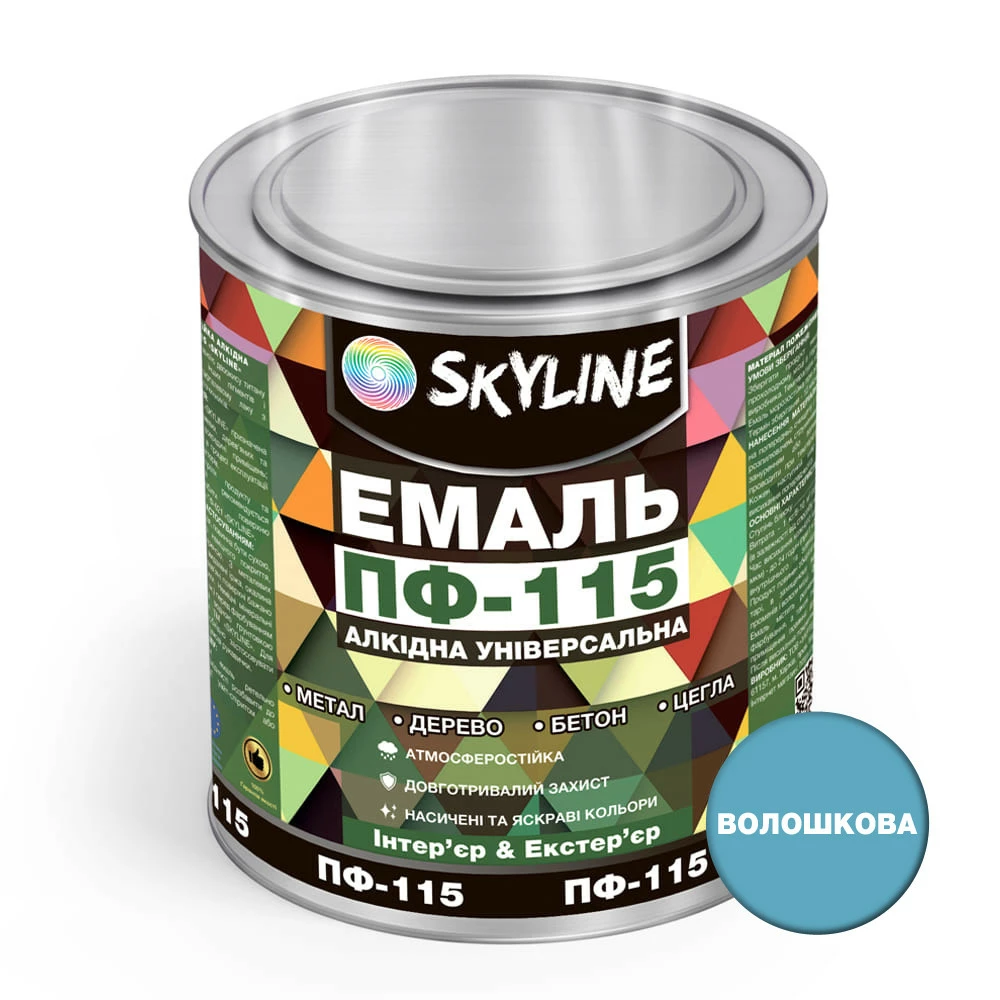 Эмаль ПФ-115 алкидная универсальная атмосферостойкая «Skyline» Васильковый 0.9 кг