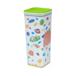 Емкость для сыпучих продуктов "Фикс" 2,25л., Артикул 169060,  параметры изделия : линейные размеры ,мм : 110 х 110 х 280, объем - 2,25 л;  кол-во в упаковке: 25 шт.    Цвета  в ассортименте :_пр./бірюзова,_пр./кремова,_пр./оливкова,_пр./світло-оранжева,_пр./темно-рожева.