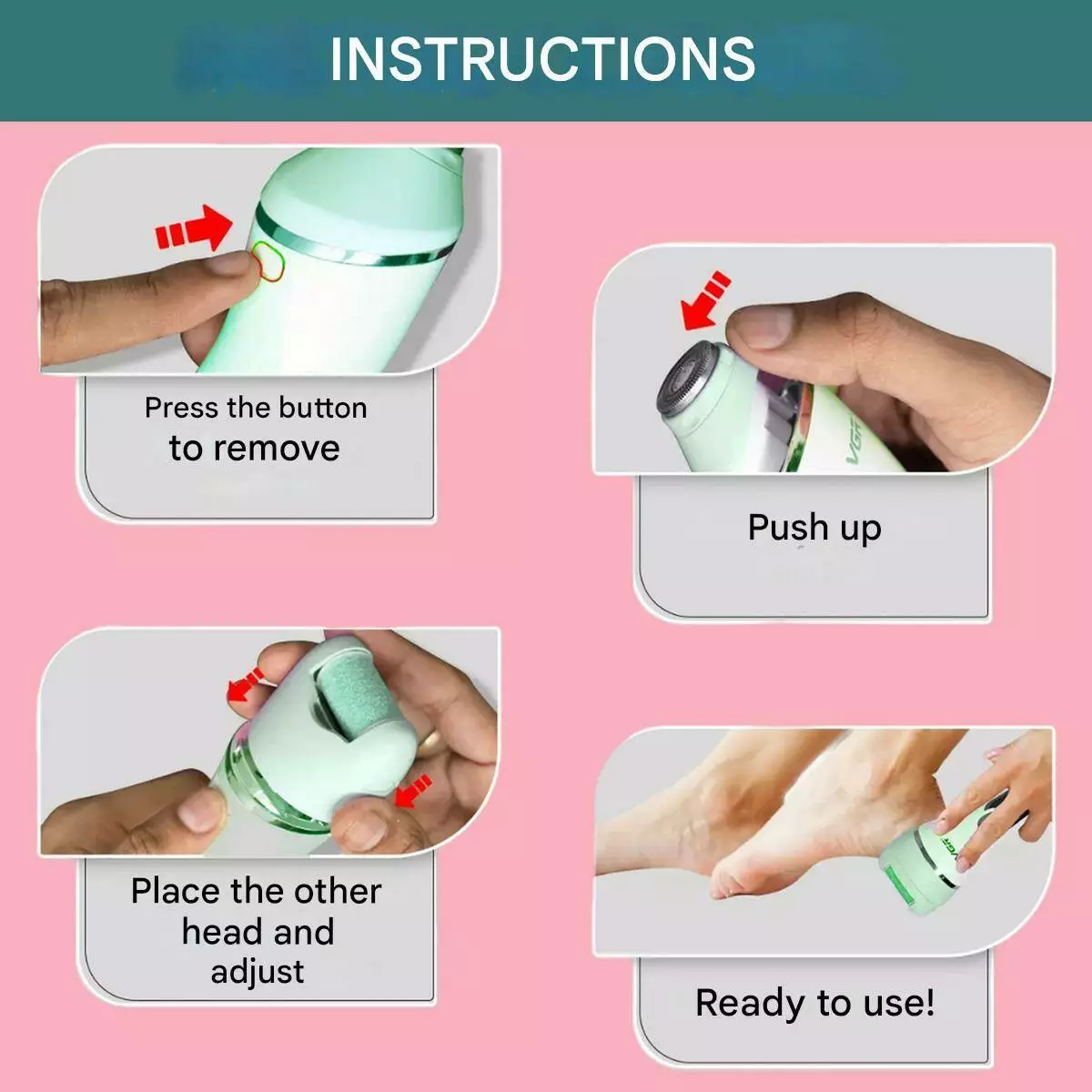 • Насадка для педикюру (роторна пилка): Ефективно видаляє шкіру, що орогів, і огрубілі ділянки стоп. Залишає шкіру гладкою та доглянутою.