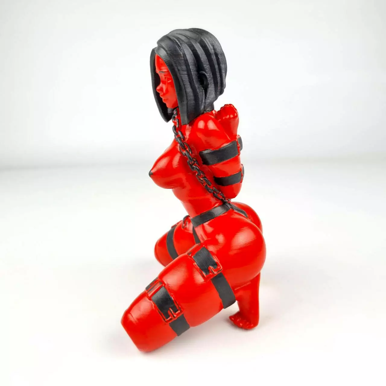 Ця богиня, надрукована на 3D-принтері з пластику, має розміри 18 x 13 x 9 см. Кожна деталь розписана вручну до досконалості — від її яскравого червоного кольору до складних елементів у стилі БДСМ, які роблять її справді унікальною.