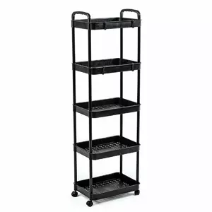 Етажерка мобільна п'ятиярусна універсальна пластикова 41х25х127см Чорна SW-00002109