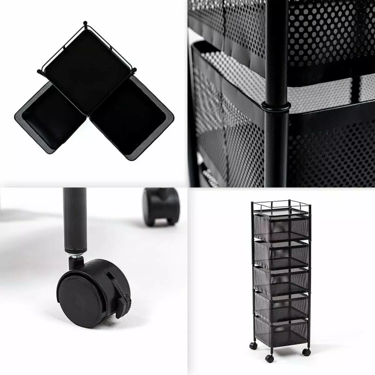 Створіть порядок і стиль із нашим п'ятирівневим металевим стелажом, оснащеним верхньою полицею з обмежувачем. Цей стелаж ідеально підійде для широкого спектру застосувань від офісного зберігання до організації кухонного простору. Поворотні кошики забезпечують легкий доступ до вмісту, а компактні розміри та мобільність роблять його незамінним помічником у підтримці порядку. Кожен із п'яти ярусів забезпечує надійне зберігання ваших предметів, а перфорована конструкція надає сучасного та легкого вигляду. Верхня полиця з обмежувачем гарантує, що навіть найвищі предмети залишаться на місці.