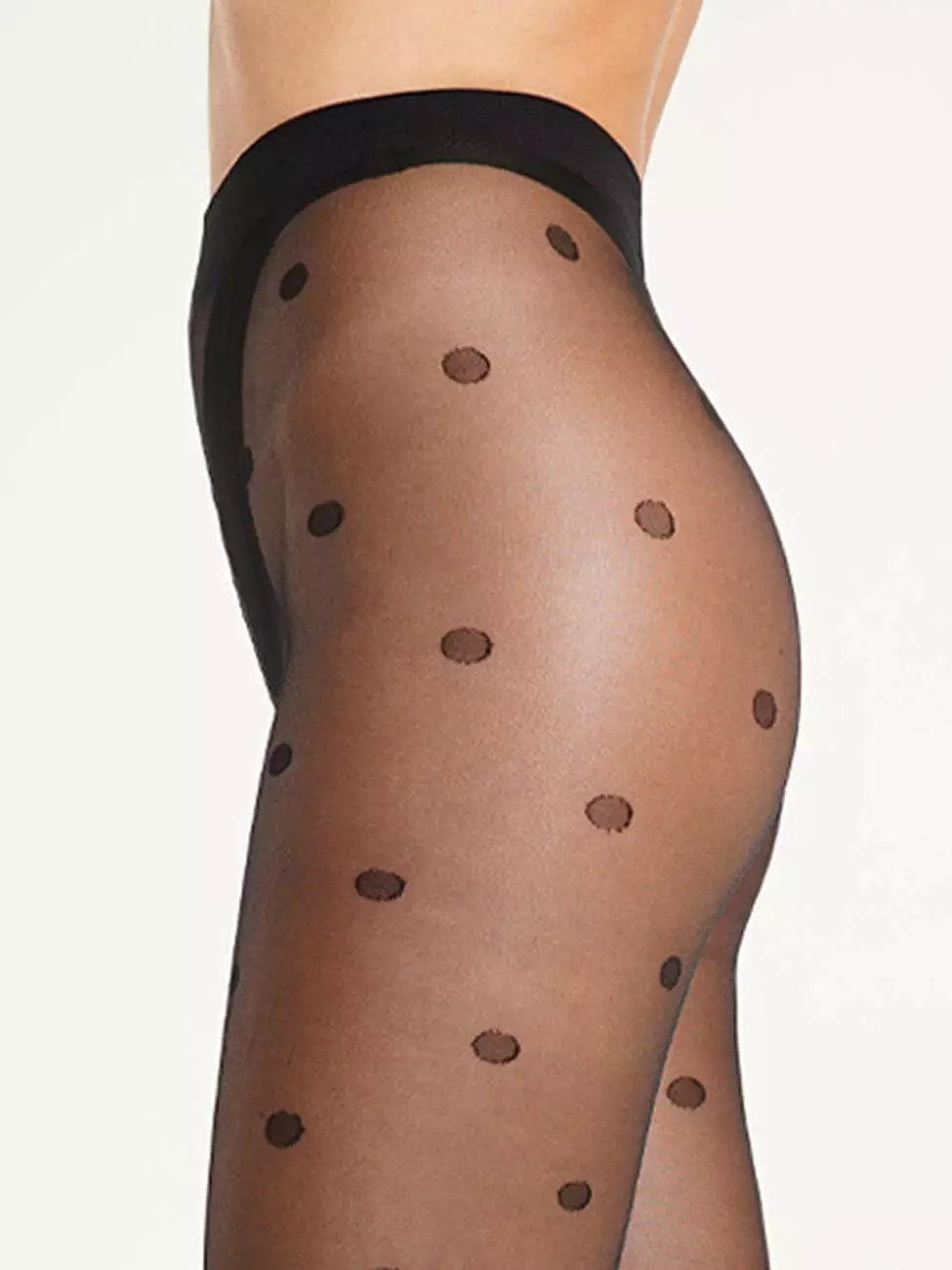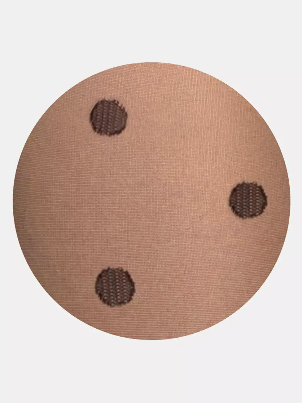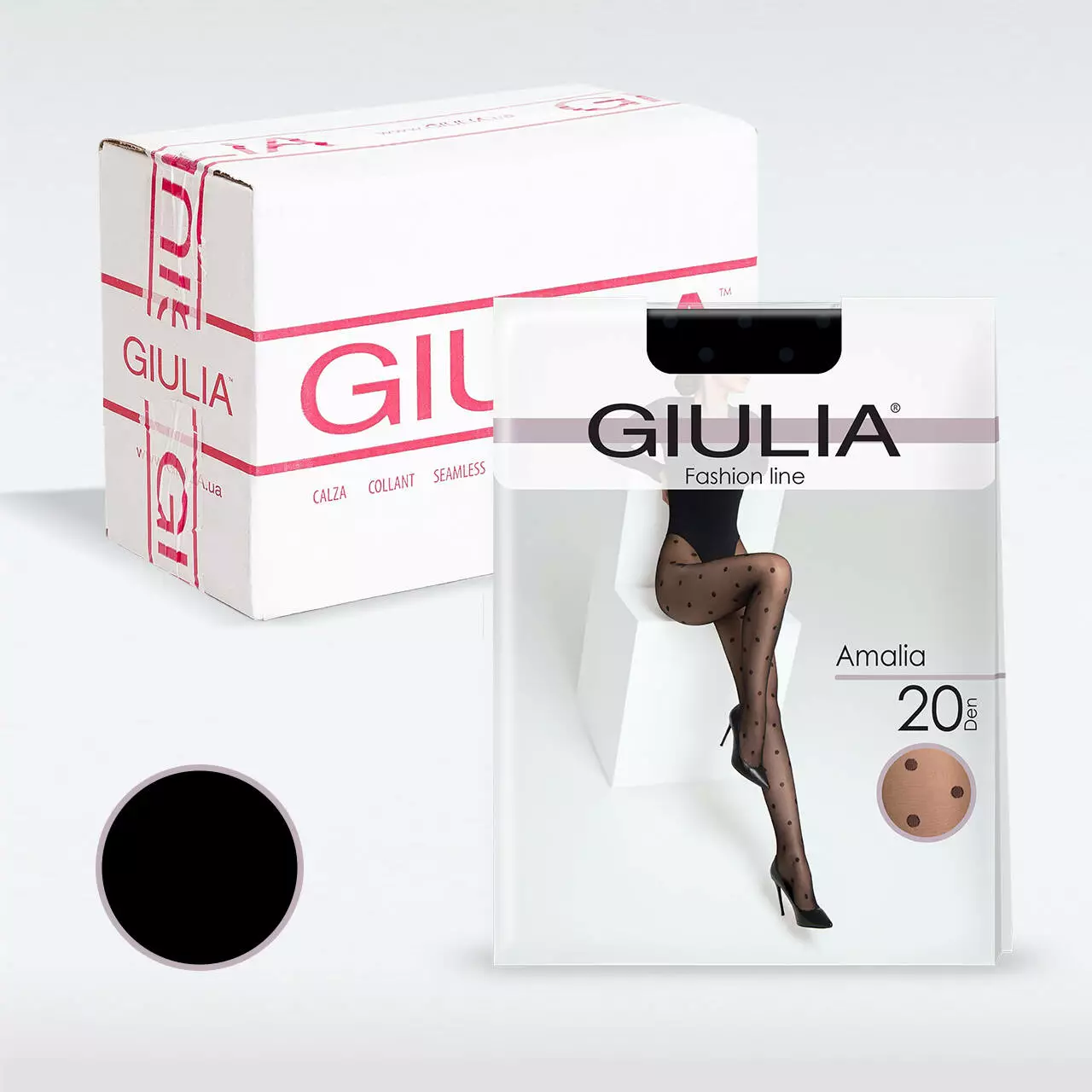 Жіночі колготки Giulia Amalia (11) 20 den з класичним принтом у великий горох мають тонку прозору текстуру, що додає образу виразності. Відсутність шортиків дозволяє поєднувати модель із коротким вбранням, забезпечуючи естетичний вигляд. Плоскі шви, м'який пояс та бавовняна ластовиця гарантують зручність та гігієнічність під час щоденного носіння.