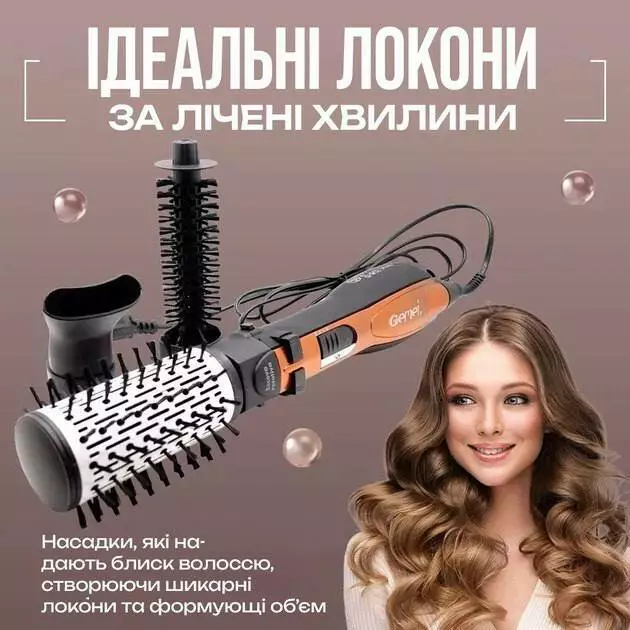 Фен-браш Geemy GM-4828 з 3 насадками - это универсальный стайлер, который позволит легко создавать разнообразные прически без особых усилий и профессиональных навыков. Благодаря мощному потоку воздуха и автоматически вращающимся щеткам, вы сможете делать как мелкие, так и крупные локоны, придавать объем, выполнять брашинг и сложные укладки. Функция вращения в двух направлениях делает процесс завивки и укладки еще удобнее. Стайлер обеспечивает бережную сушку без повреждения структуры волос, а равномерное распределение тепла предотвращает их пересушивание.