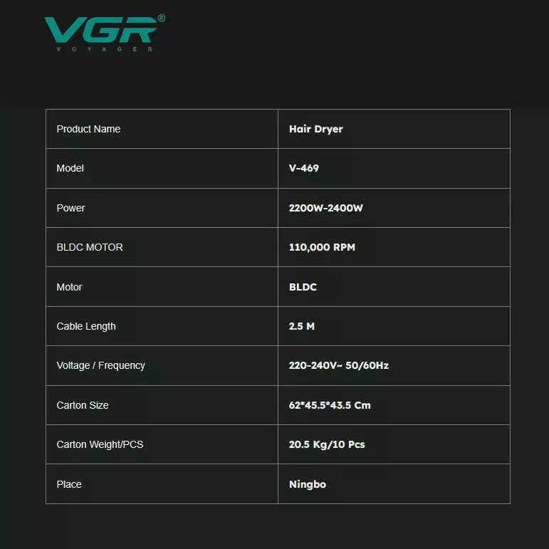 Професійний фен VGR V-469 - потужний і багатофункціональний