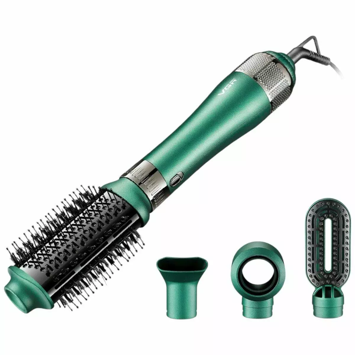 Фен щітка VGR V-493 — універсальний прилад 4 в 1 потужністю 1000 Вт, що працює при напрузі 220-240 В та частоті 50/60 Гц. Він допоможе створити будь-яку зачіску: від гладкої до прикореневого об’єму, а також різноманітні локони — горизонтальні, природні хвилі та спіральні вертикальні завитки.