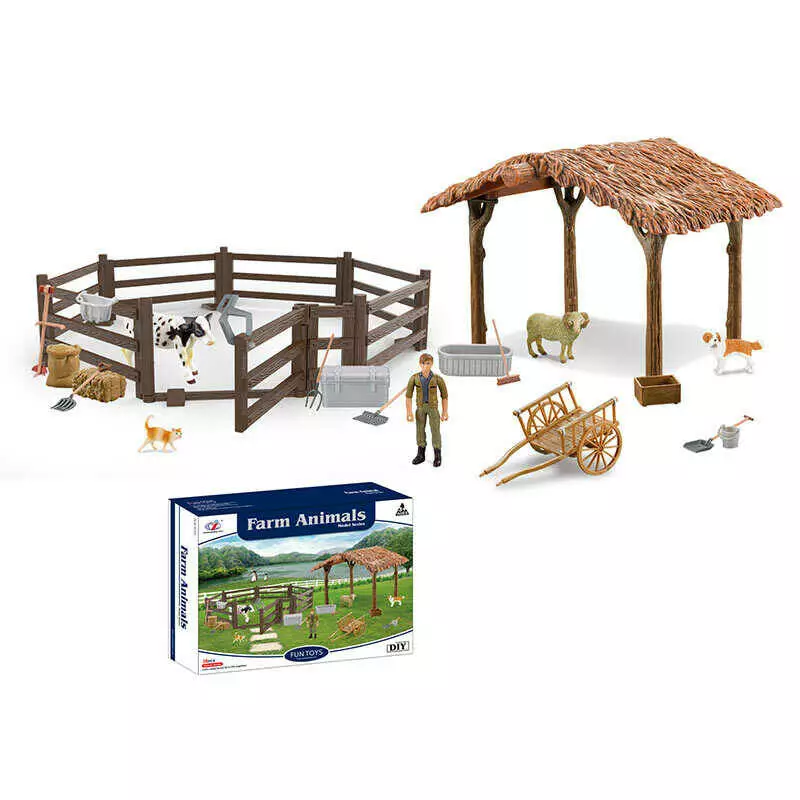 Ферма Q 9899 ZJ93 (12) 38 елементів, фігурка фермера, загорожа, господарський навіс, свійські тварини, повозка, інструменти, аксесуари, в коробці
