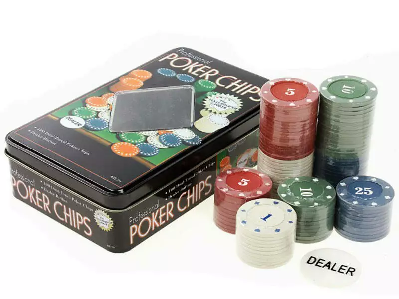 Фишки для покера 100 фишек с номиналом в металлической коробке №100t